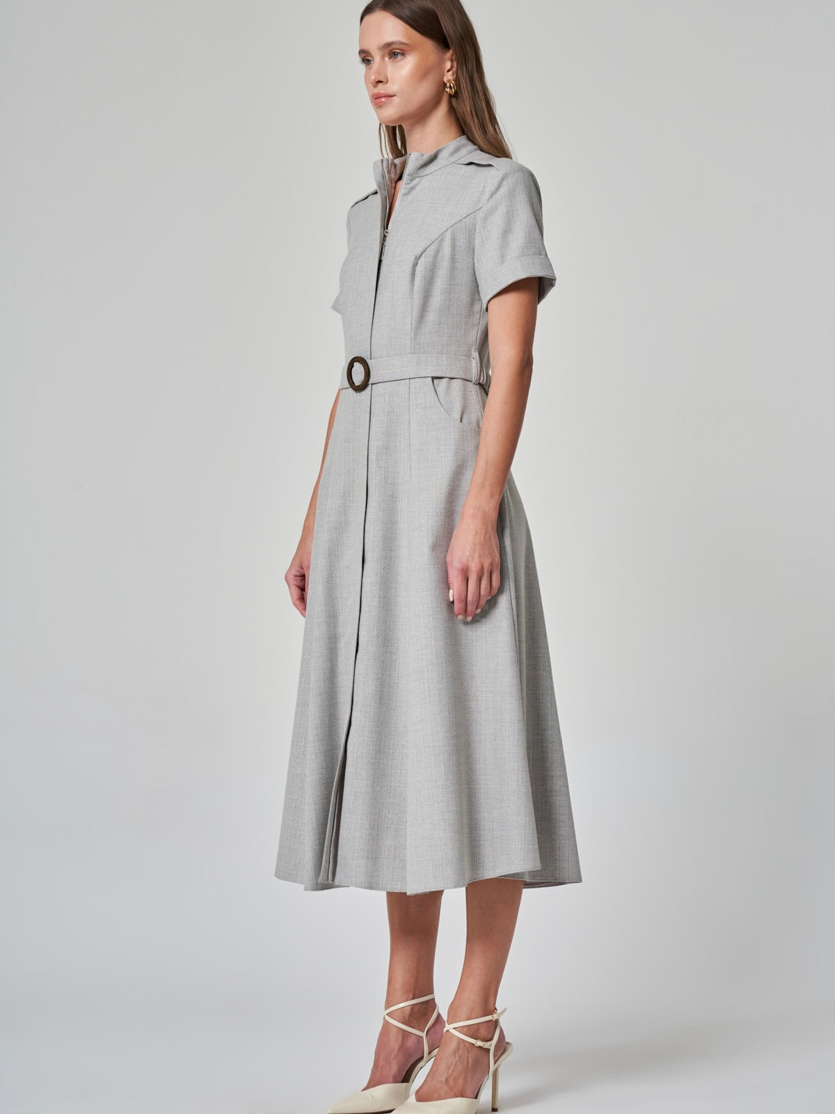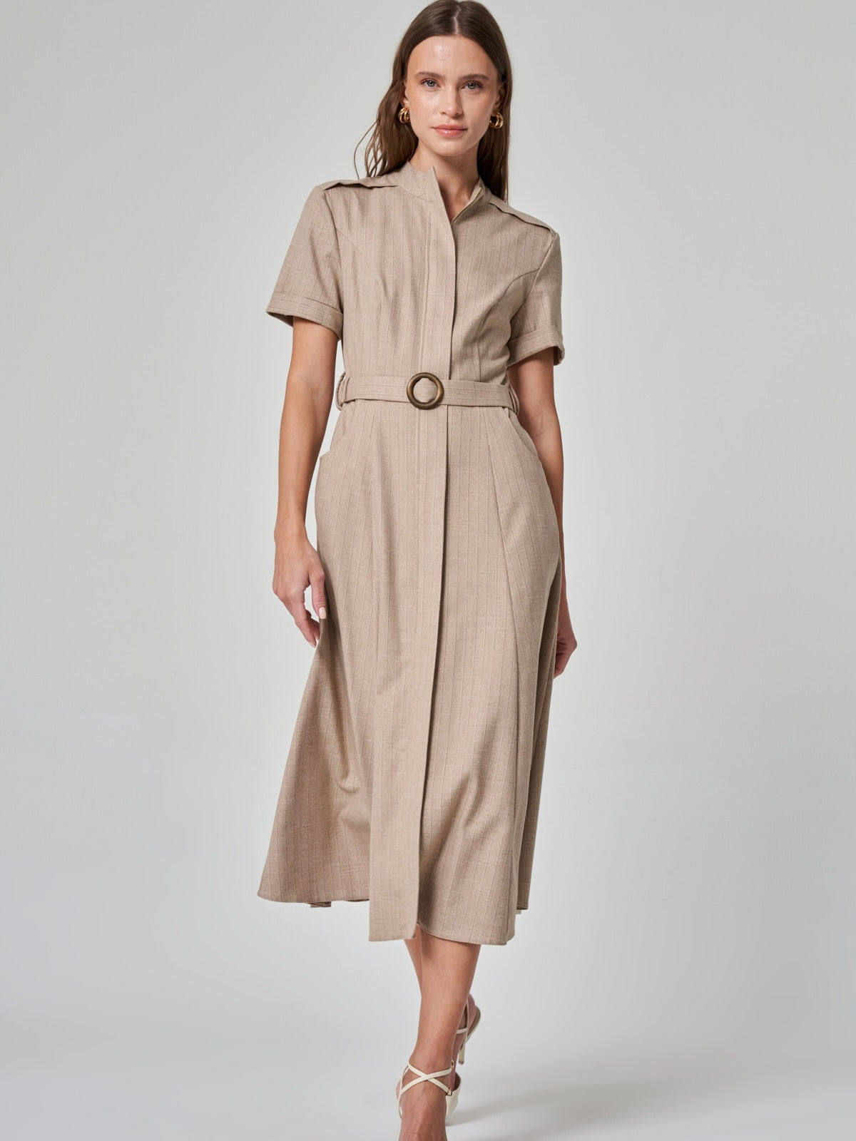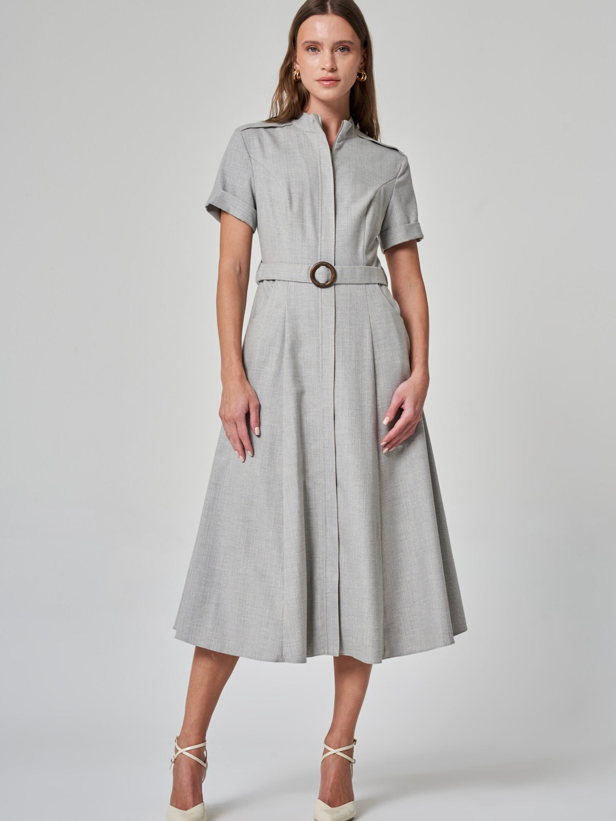 Modern, sofistike ve fonksiyonel… %50 polyester, %20 pamuk, %18 viskon ve %9 lycra karışımıyla konforlu bir kullanım sunan bu elbise, şehirli kadının dinamik temposuna uyum sağlıyor. Dik yaka ve kısa kollu tasarımıyla güçlü bir duruş sergilerken, cepli ve kemerli yapısıyla hem şık hem de fonksiyonel bir görünüm sunuyor. Ön fermuar detayı, modern çizgisini vurgularken, gri ve bej renk seçenekleriyle her ortama uyum sağlayan zamansız bir stil yaratıyor. İş toplantılarından sosyal davetlere kadar günün her anında size eşlik edecek bir tasarım!