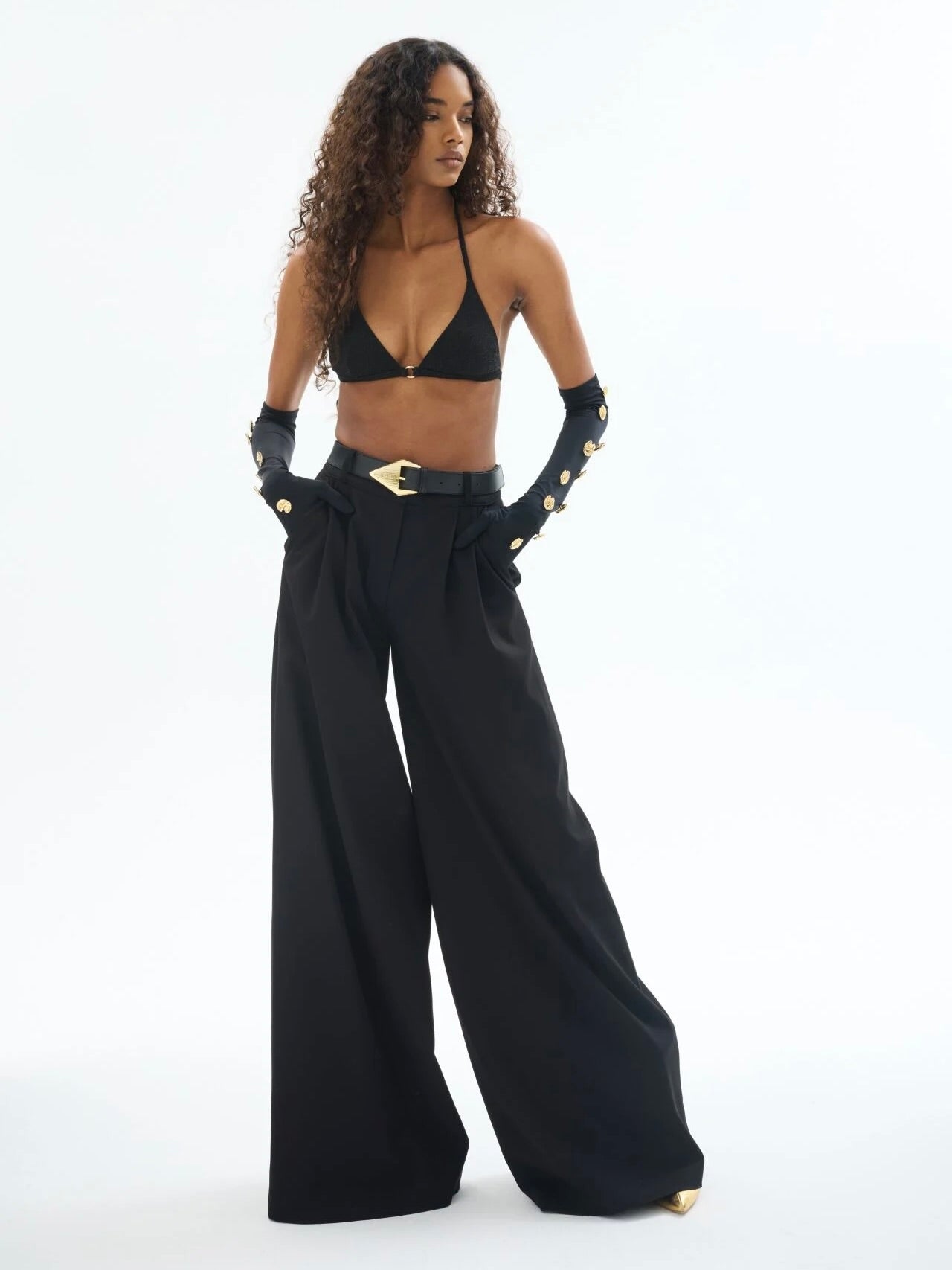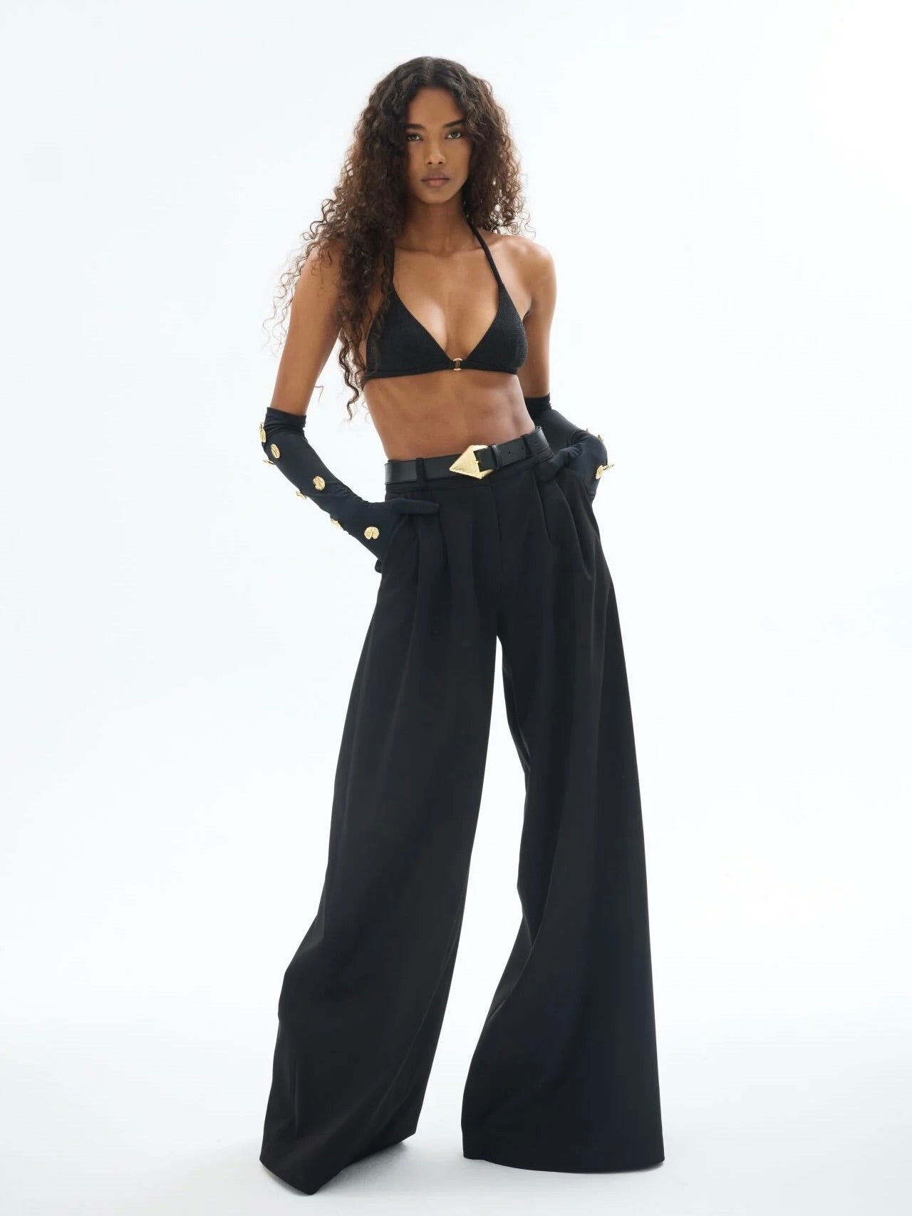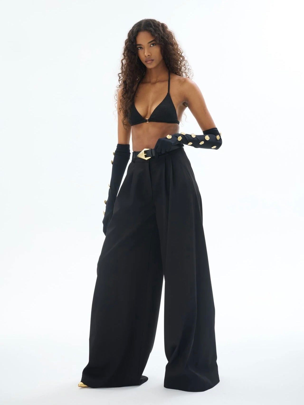 Zamansız şıklığın güçlü bir temsilcisi olan Gaia n Uranos siyah bol paça pantolon, yüksek modanın iddialı çizgilerini sofistike bir rahatlıkla buluşturuyor. Geniş kesimiyle etkileyici bir silüet sunarken, bel kısmındaki pilise detayları modern ve güçlü bir stil yaratıyor. Günlük şehir şıklığından gece davetlerine uzanan bu pantolon, ister minimal ister iddialı parçalarla kombinlenerek stilinize farklı bir boyut katabilir. Hem özgüvenli hem de zarif bir duruş için gardırobunuzun joker parçası.