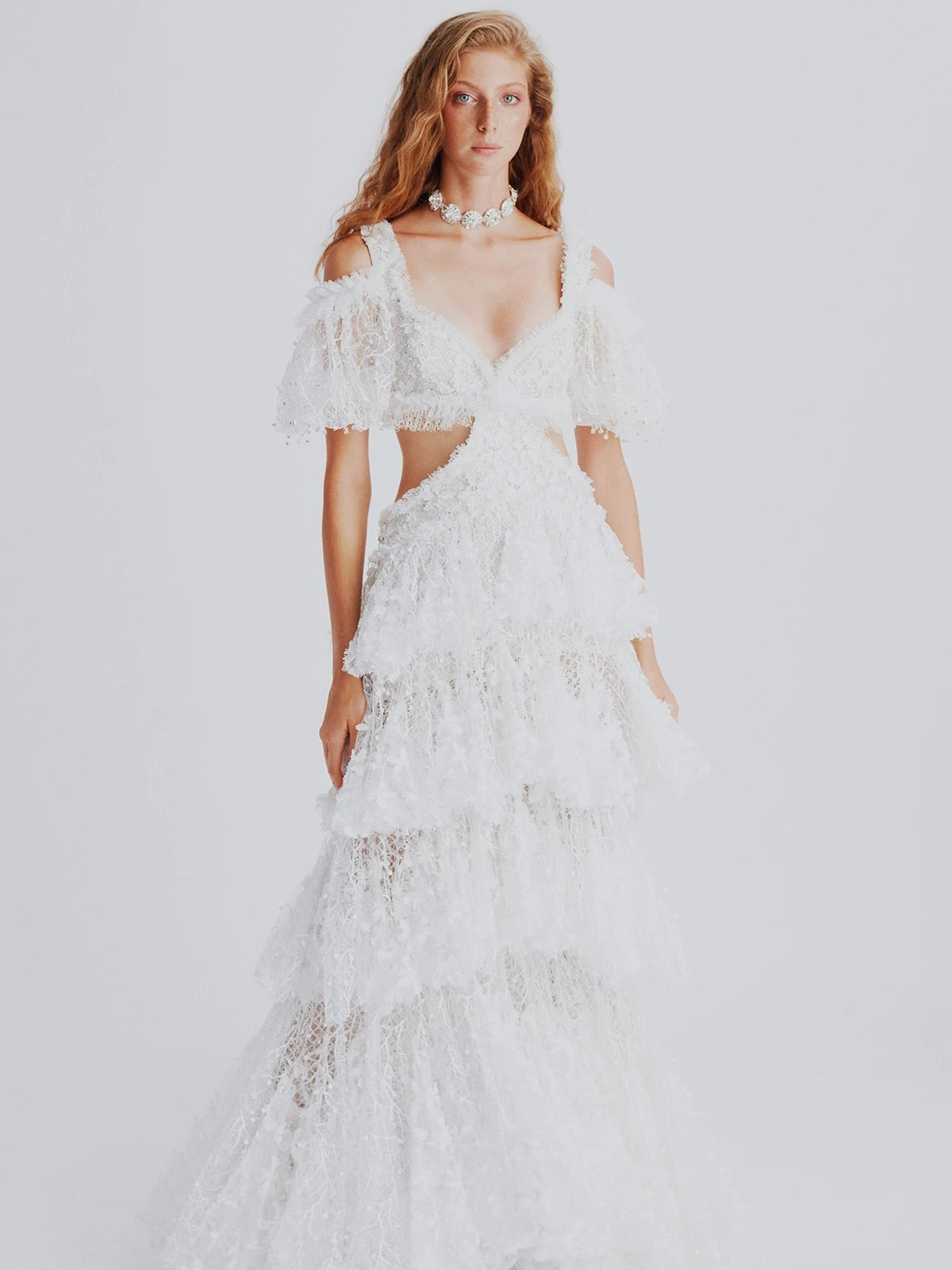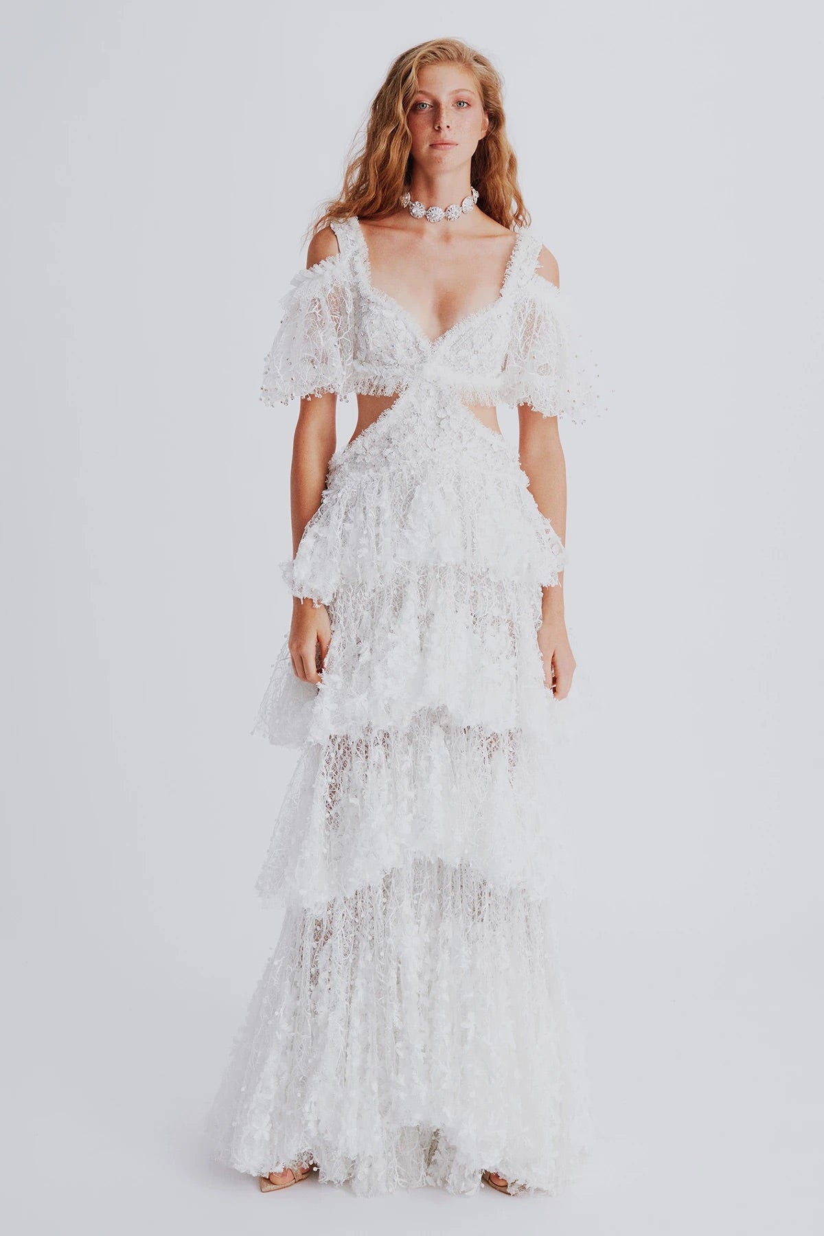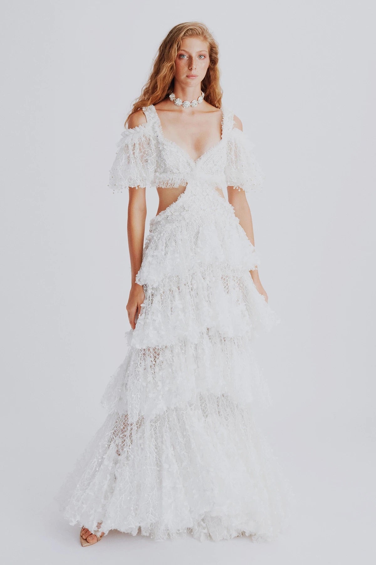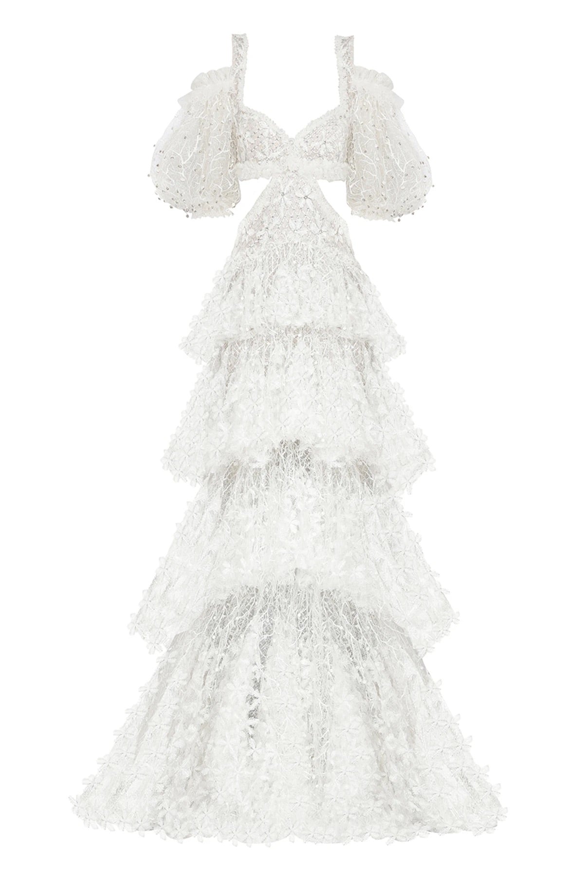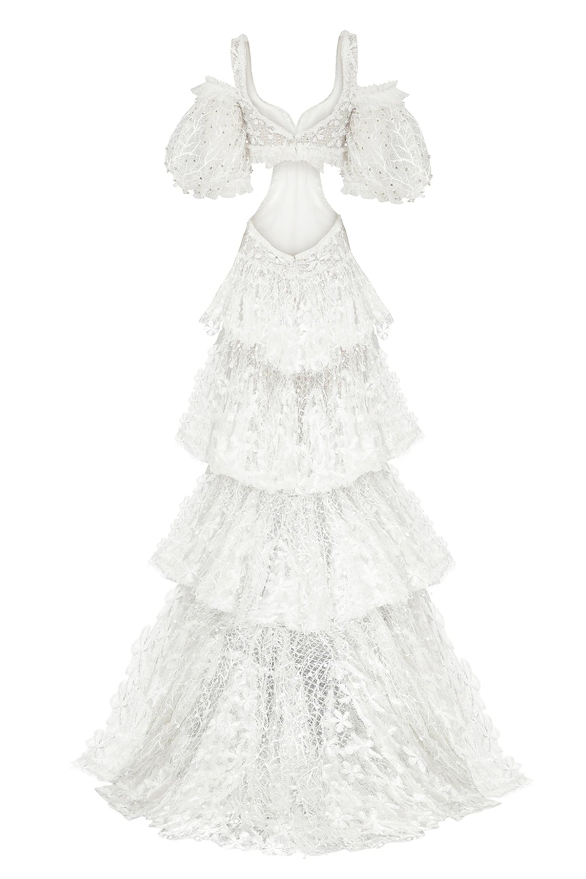 Haleia Çiçek Motifli Katlı Dantel Gelinlik