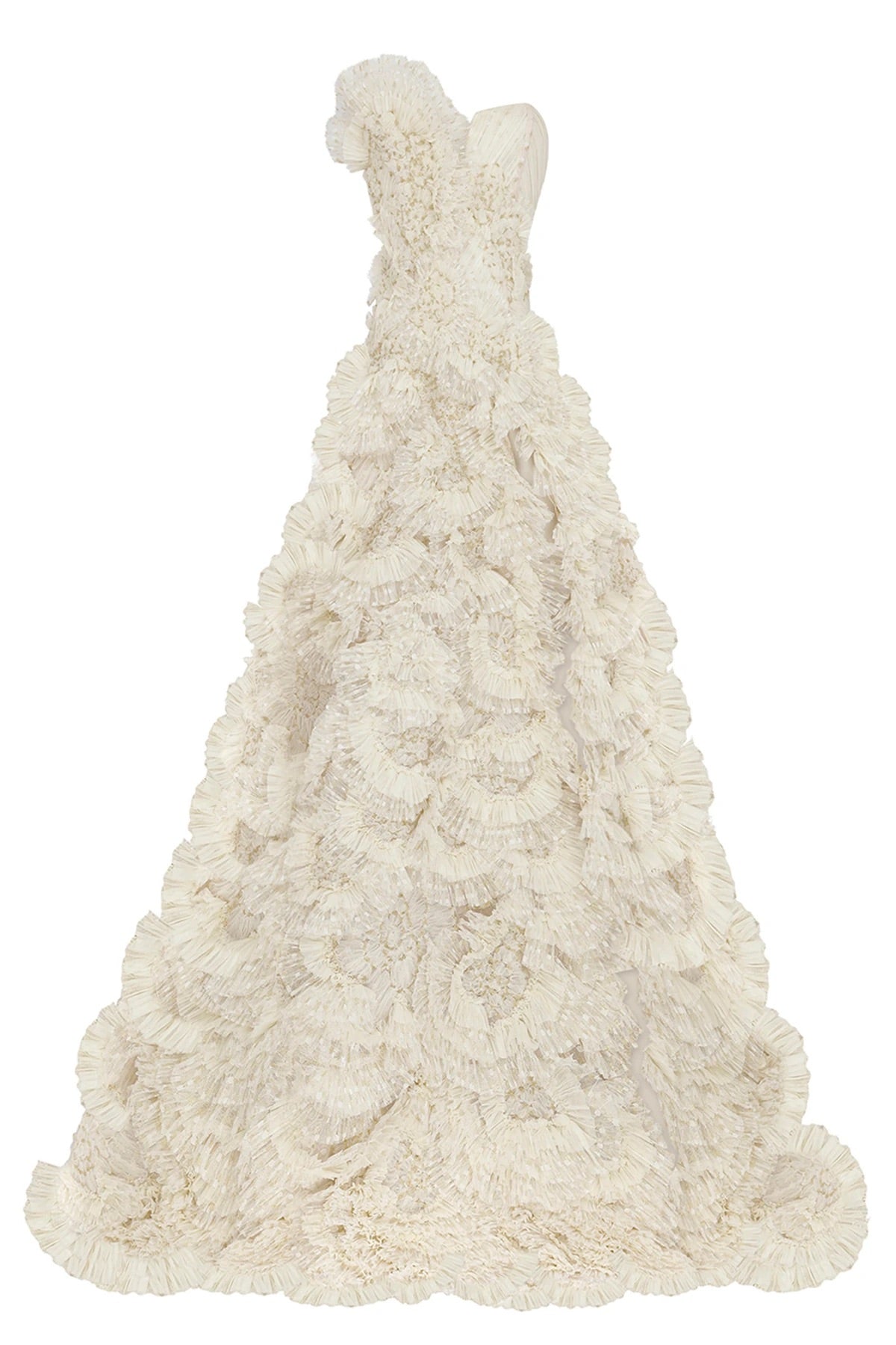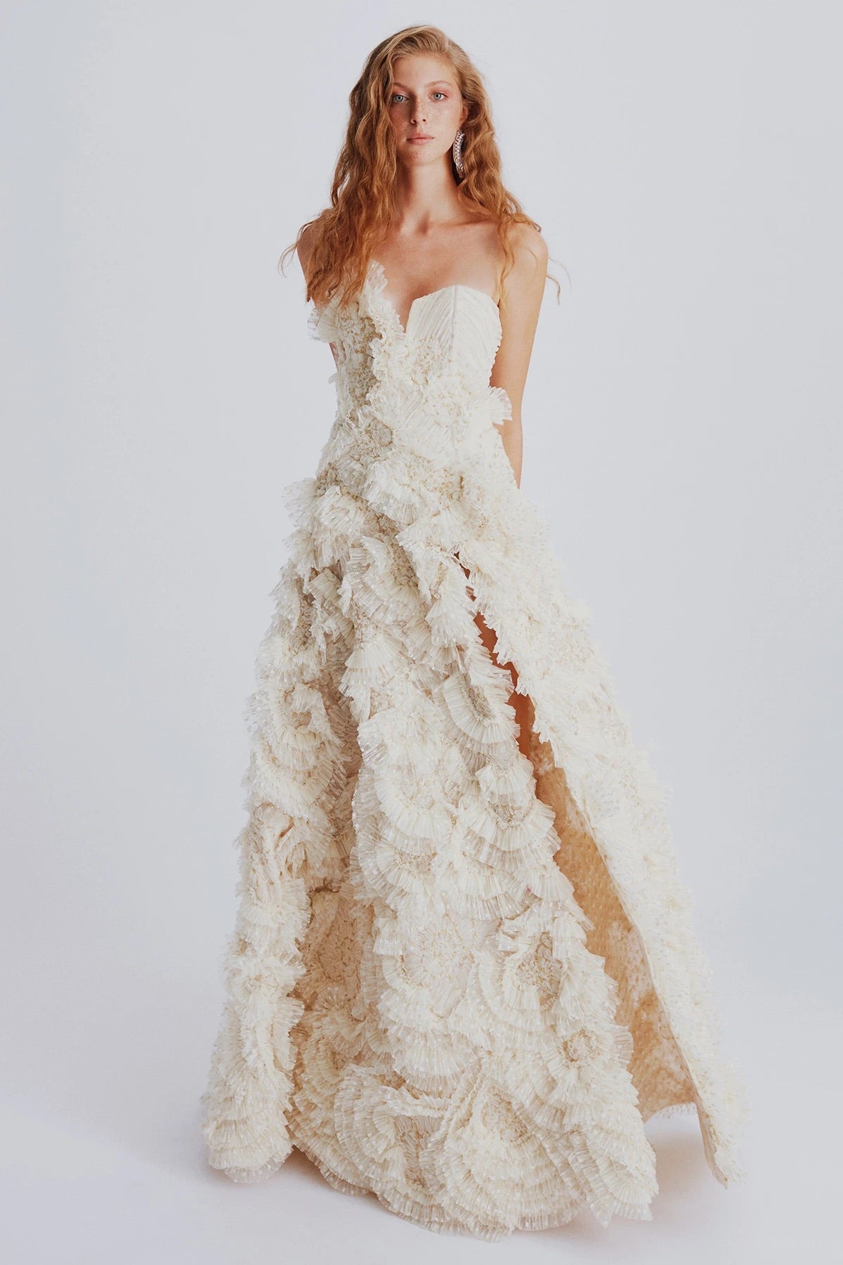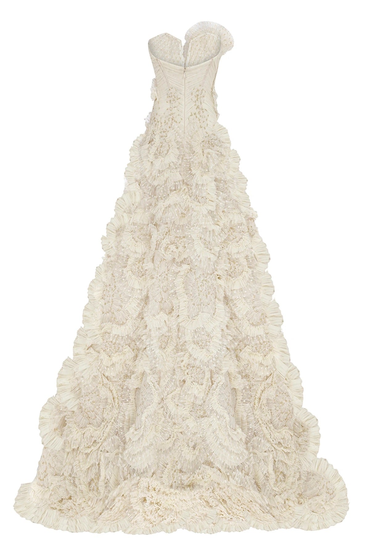 Haleia Straplez Çiçek Aplikeli Fırfır Detaylı Gelinlik