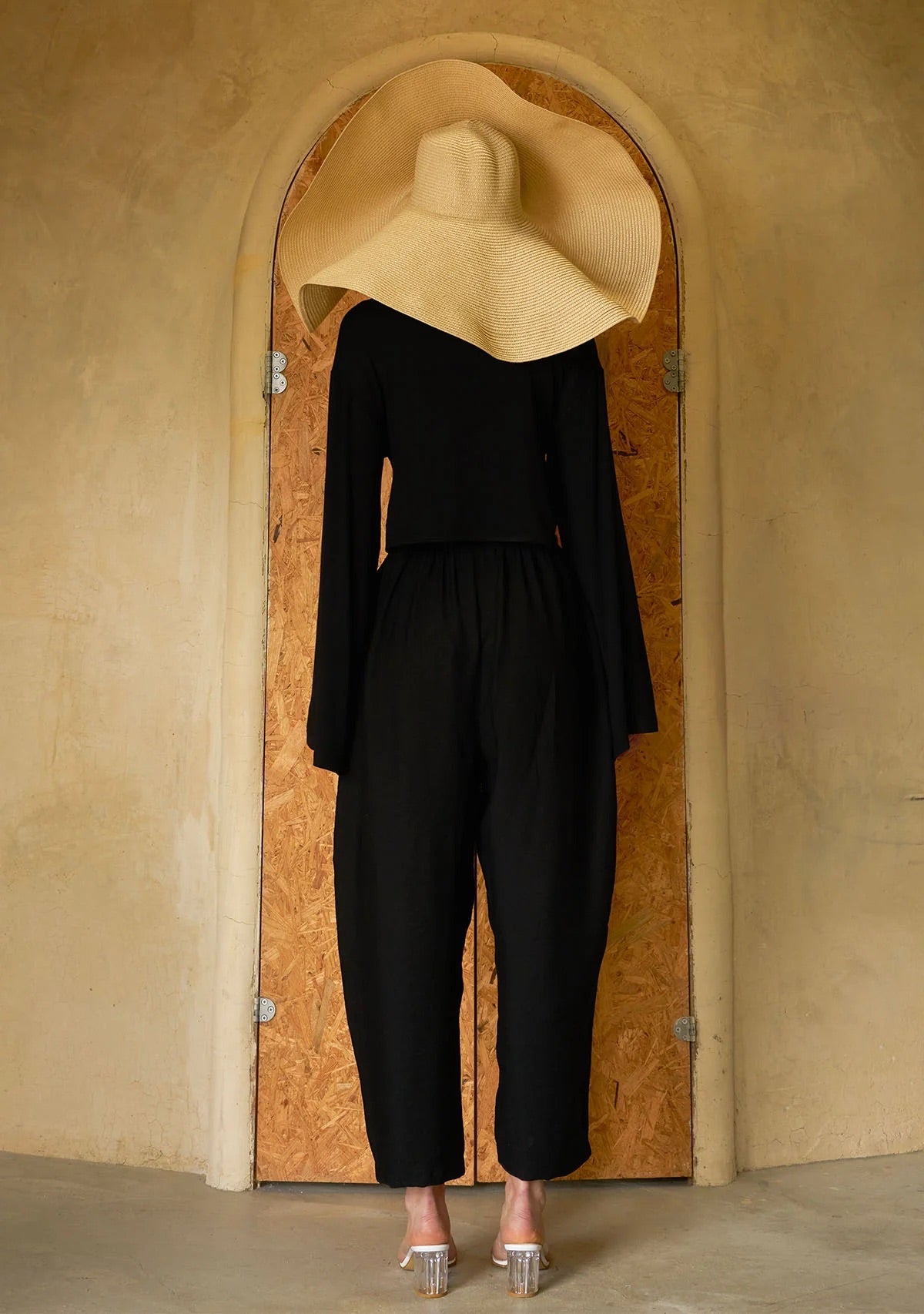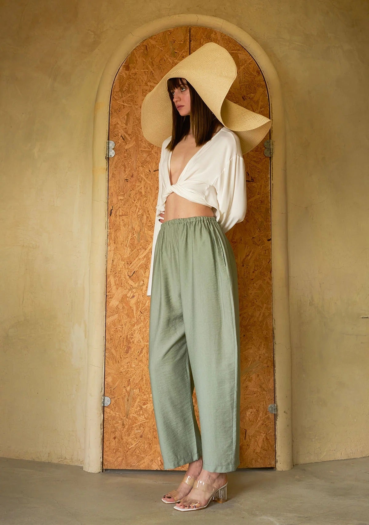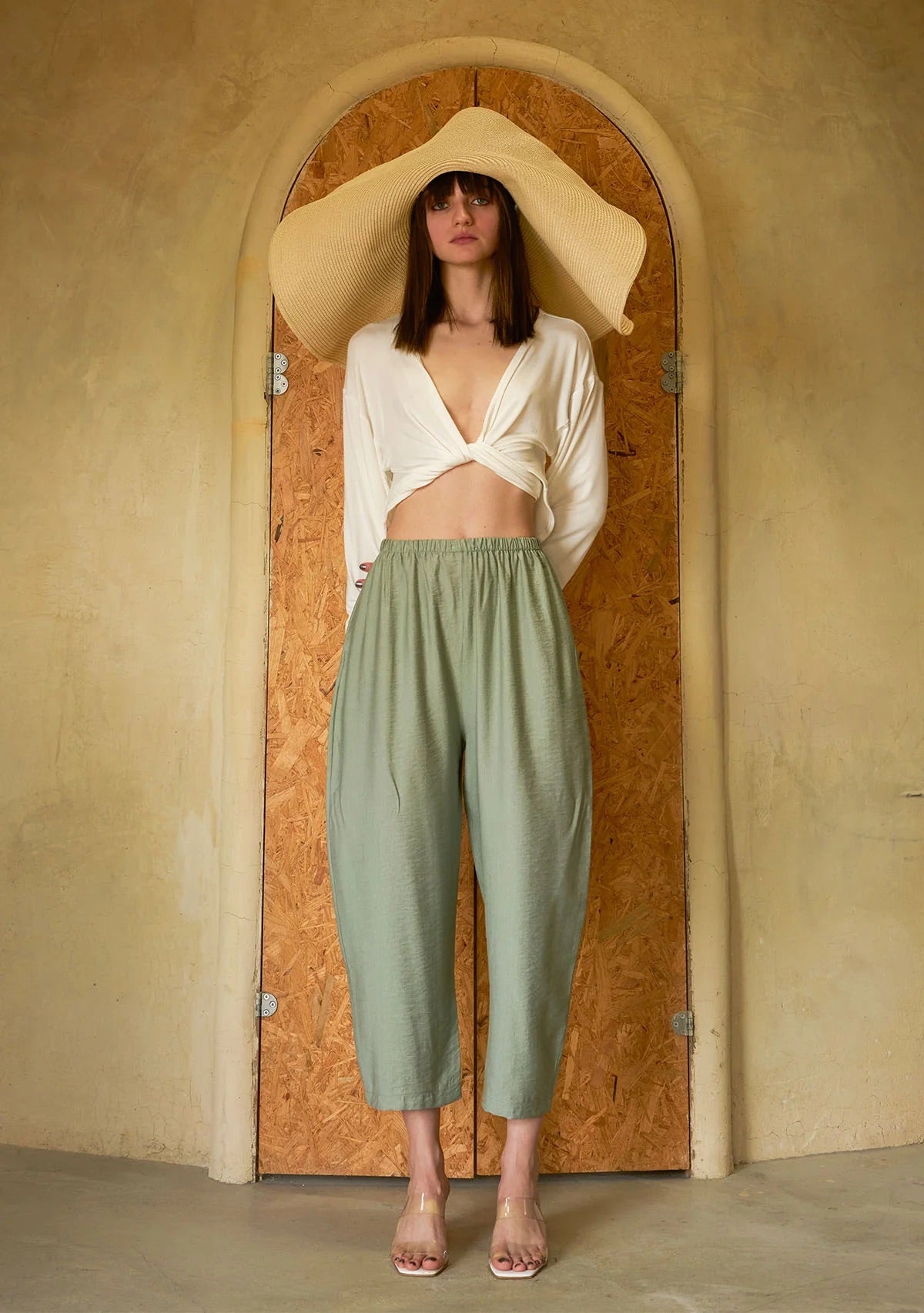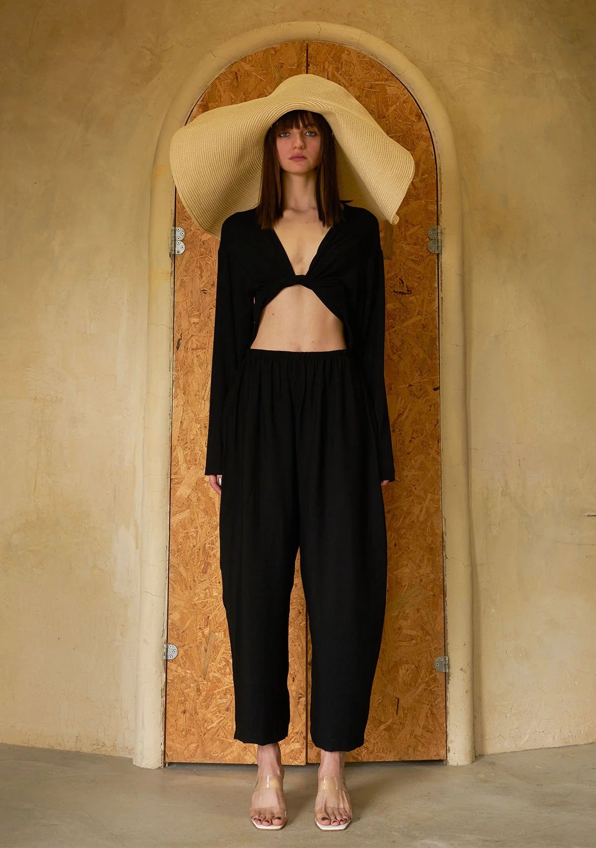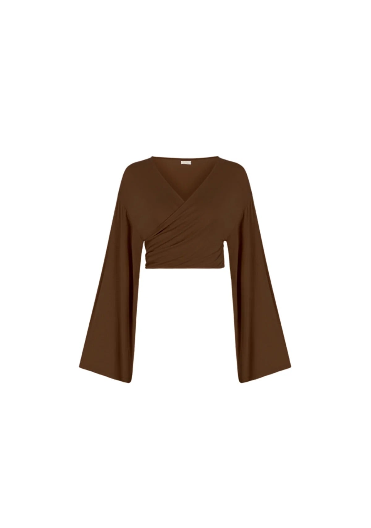Yumuşak dokulu kumaşıyla teninize nazikçe temas eden bu uzun kollu bluz, bağlamalı ve esnek yapısıyla vücudu zarifçe kavrar. Yarasa kol kesimi, rahat bir hareket alanı sunarken kısa formu ve beli saran bağcıklarıyla feminen bir siluet yaratır.