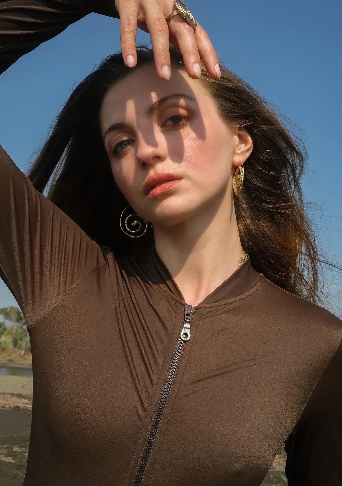 Güneşten koruma sağlayan uzun kollu tasarımıyla hem şık hem fonksiyonel bir parça. Önden fermuarlı detayı sayesinde kullanım kolaylığı sunarken, su sporlarında özgürce hareket etmenizi sağlar. Plajdan dalgalara uzanan rahat ve modern bir stil yaratır.