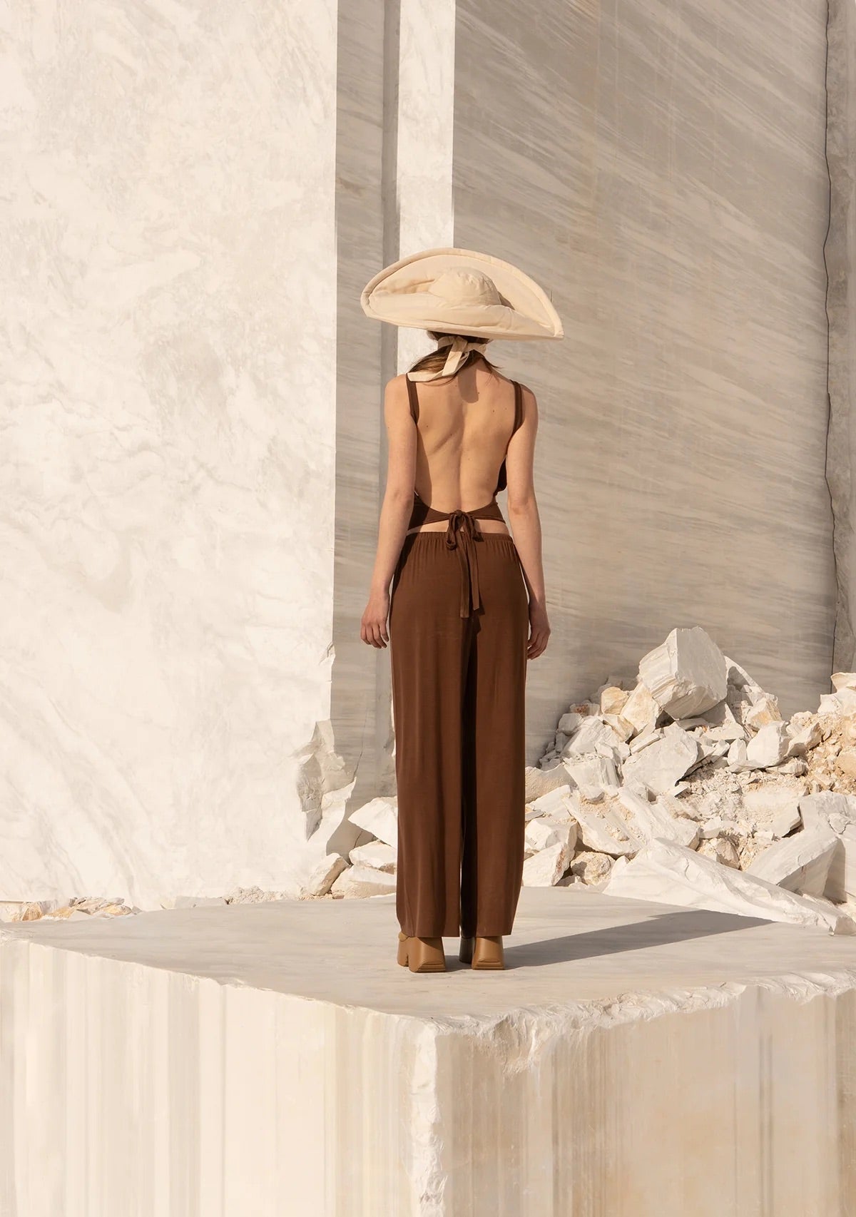 Yumuşak dokulu pamuk karışımlı kumaşıyla teninize nazikçe dokunan bu bluz, sırtı tamamen açık kesimi ve beldeki bağlamasıyla feminen ve cesur bir görünüm sunar. Bel kısmındaki bağcık sayesinde kişiye özel bir uyum sağlarken, kısa kesimiyle stilinize modern bir siluet kazandırır. Günlük şıklığa iddialı bir dokunuş arayanlar için güçlü bir seçim.