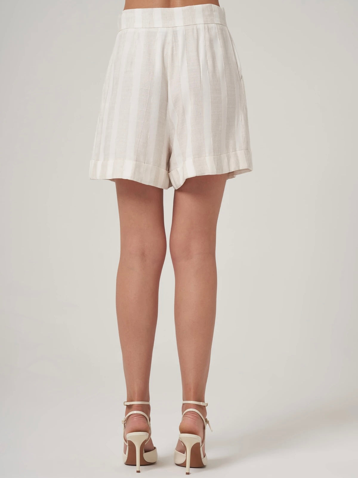 Utopian Çizgili Yüksek Bel Kısa Şort – Bej