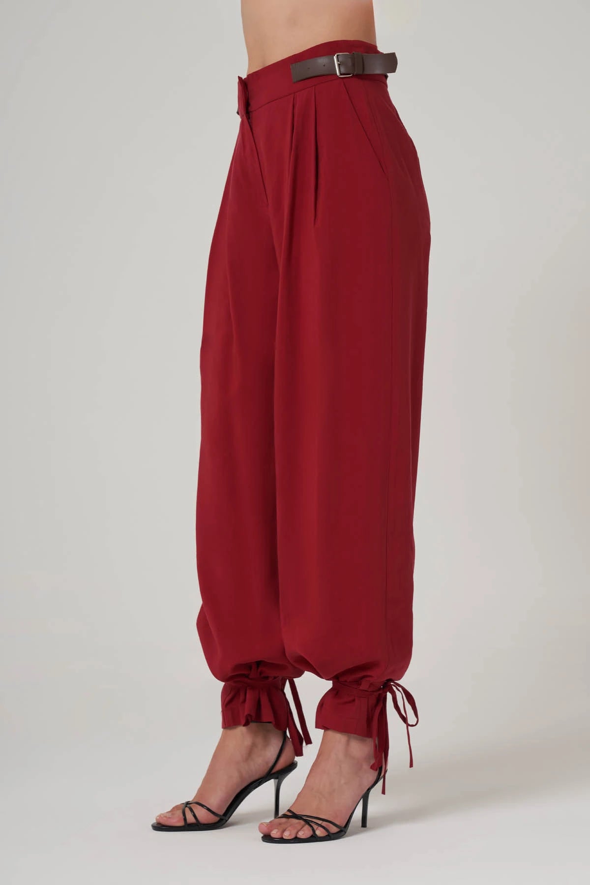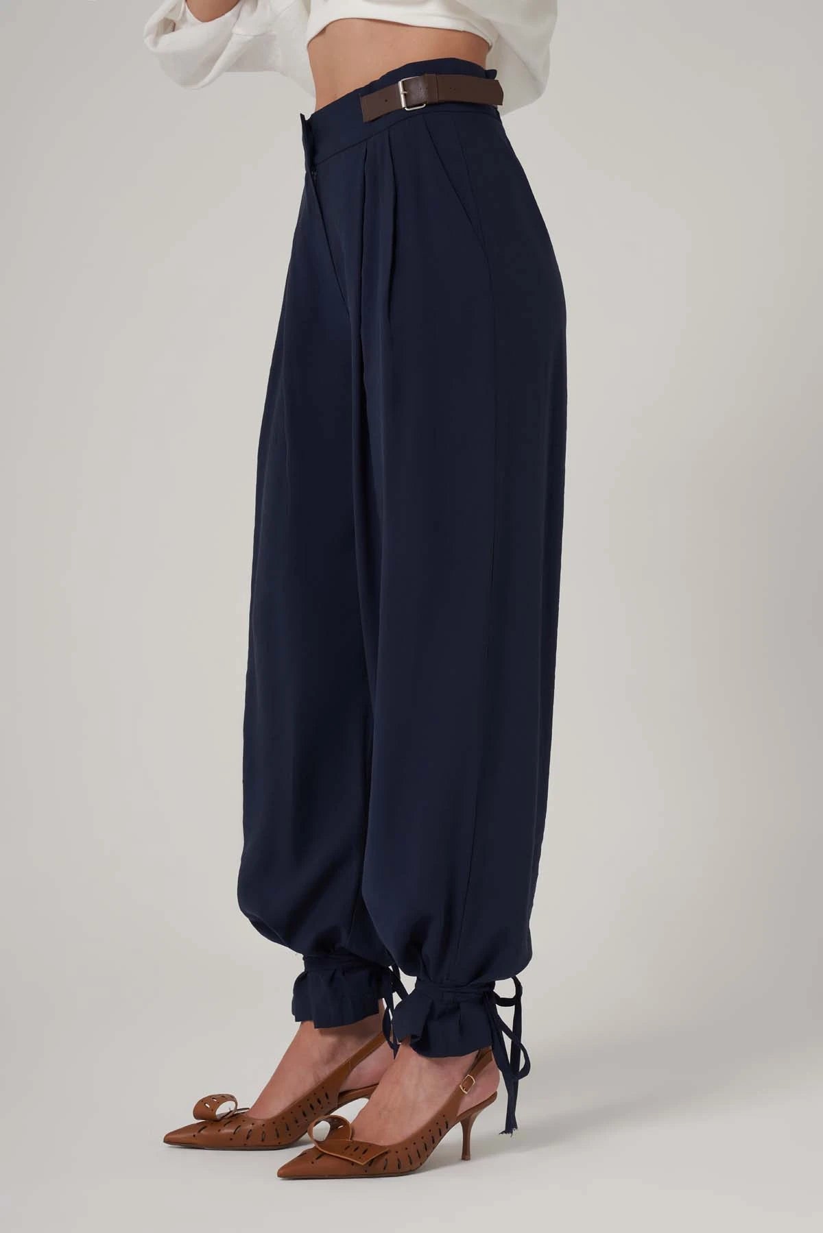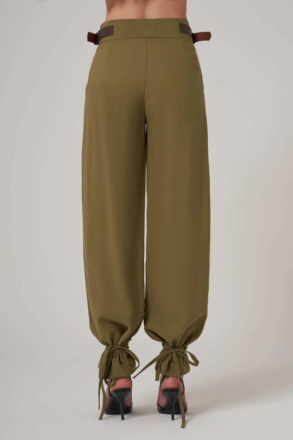 Utopian Deri Kemer Detaylı Paça Bağlamalı Pantolon