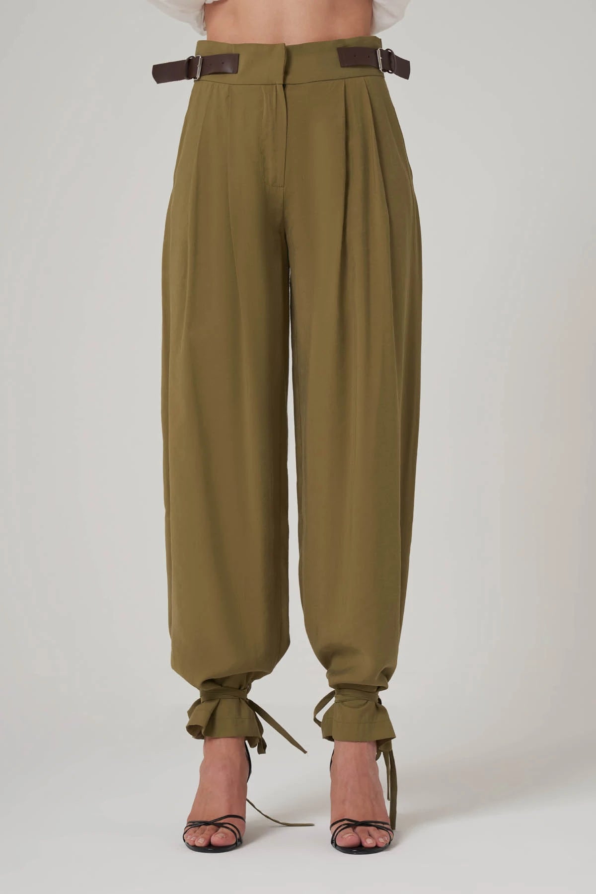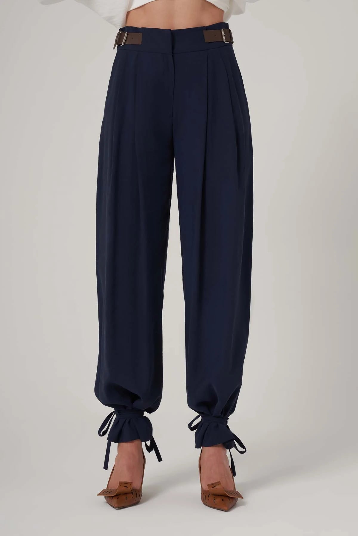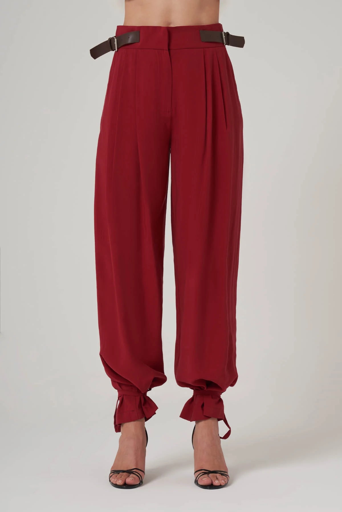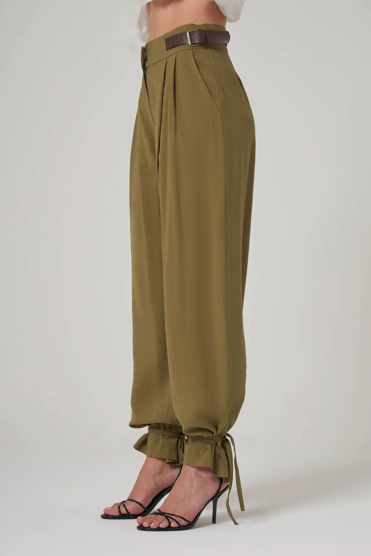 Utopian Deri Kemer Detaylı Paça Bağlamalı Pantolon