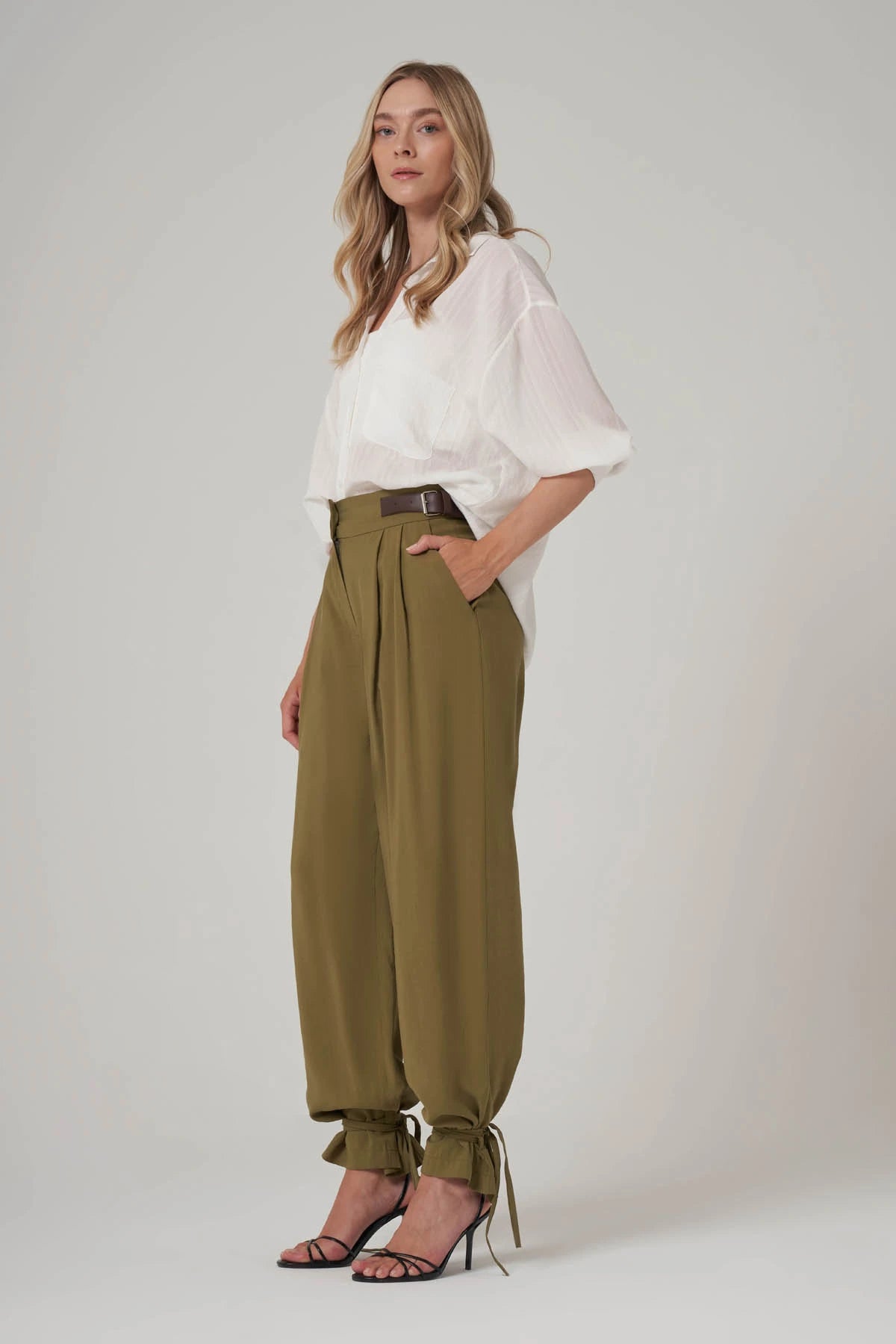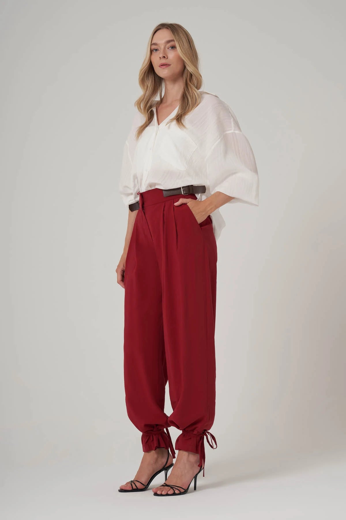 Utopian – Deri Kemer Detaylı Paça Bağlamalı Pantolon