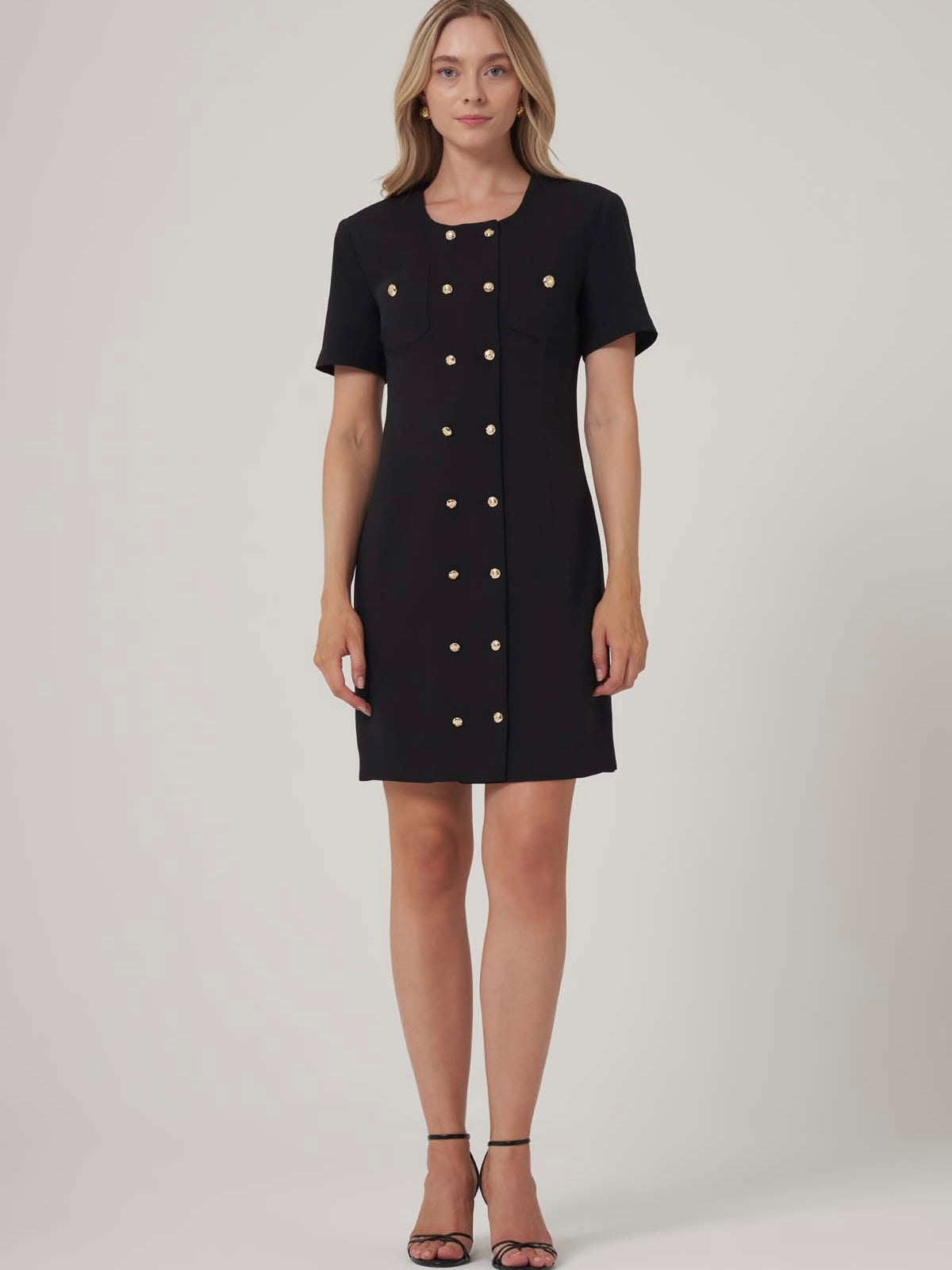 Klasik çizgileri modern bir zarafetle buluşturan bu kısa kollu siyah elbise, Utopian’ın sade ama güçlü stil anlayışını yansıtıyor. Ön yüzeyindeki altın düğme detayları ve uyumlu kemeri ile hem iş hayatında hem de özel etkinliklerde stil sahibi bir görünüm sunar. Hafif dokusu ve astarlı yapısıyla rahat bir kullanım sağlar.