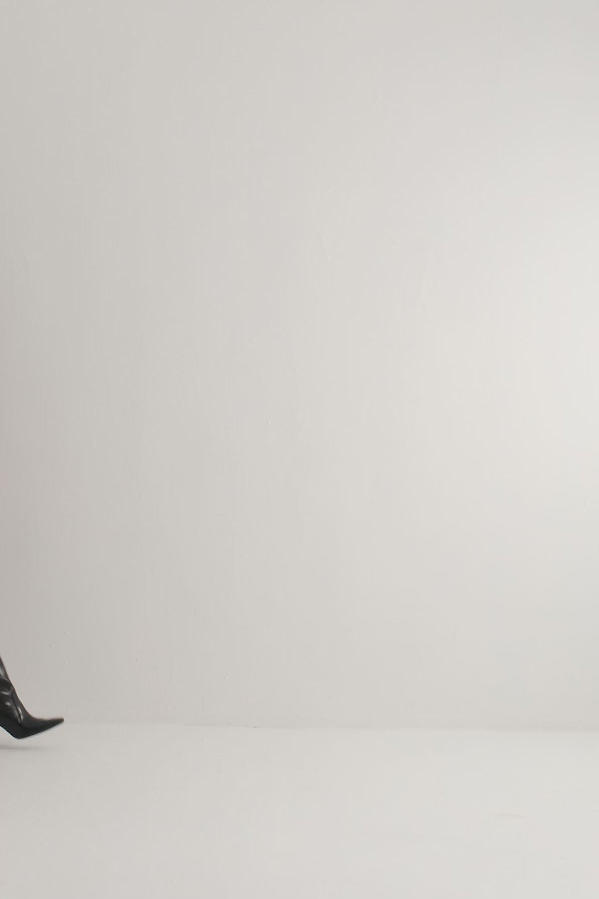Model 173 cm boyunda, 84 cm göğüs, 63 cm bel ve 91 cm kalça ölçülerine sahiptir. Çekimde 36 beden giyilmiştir.