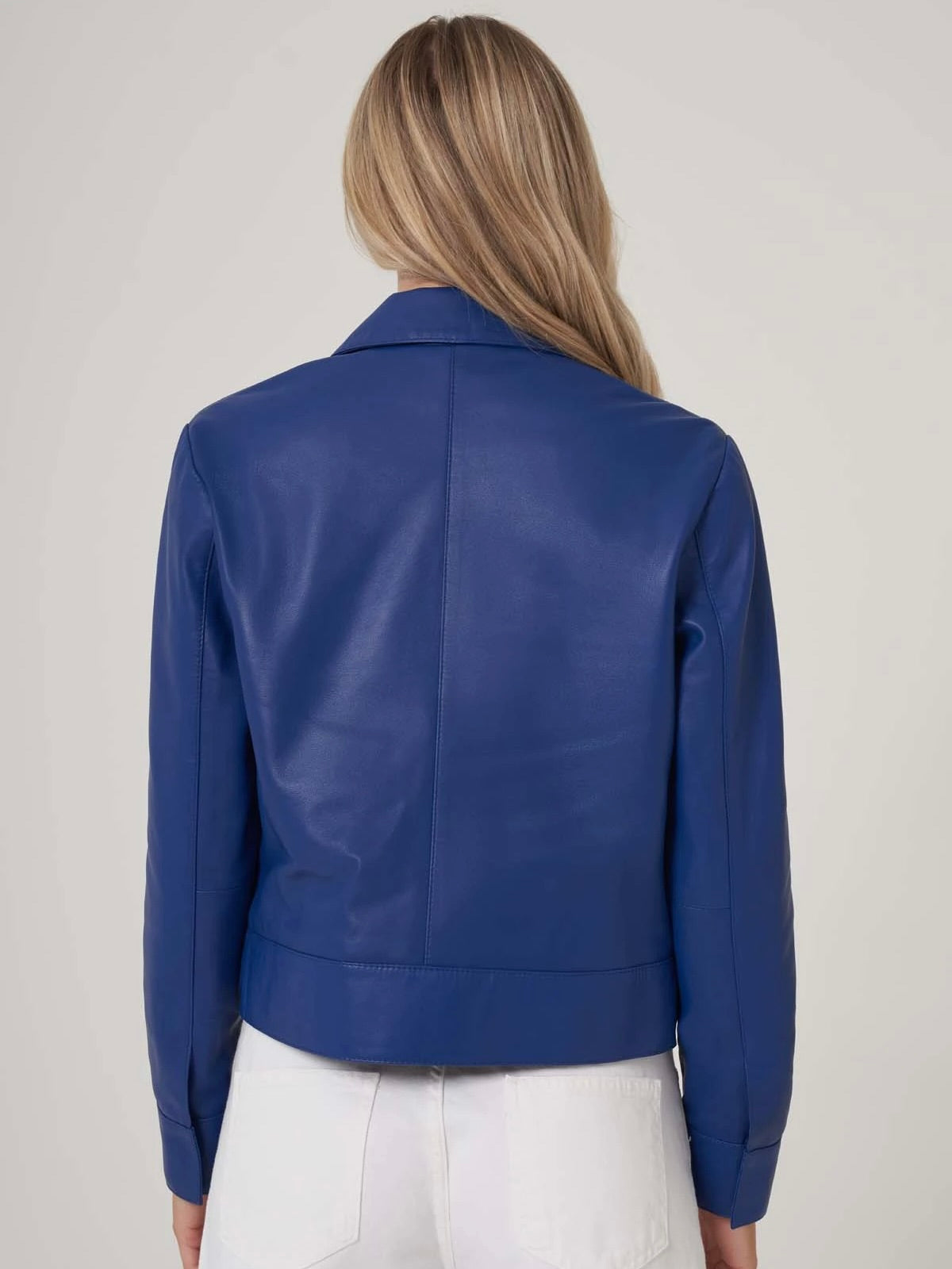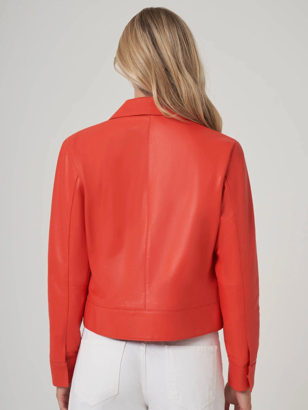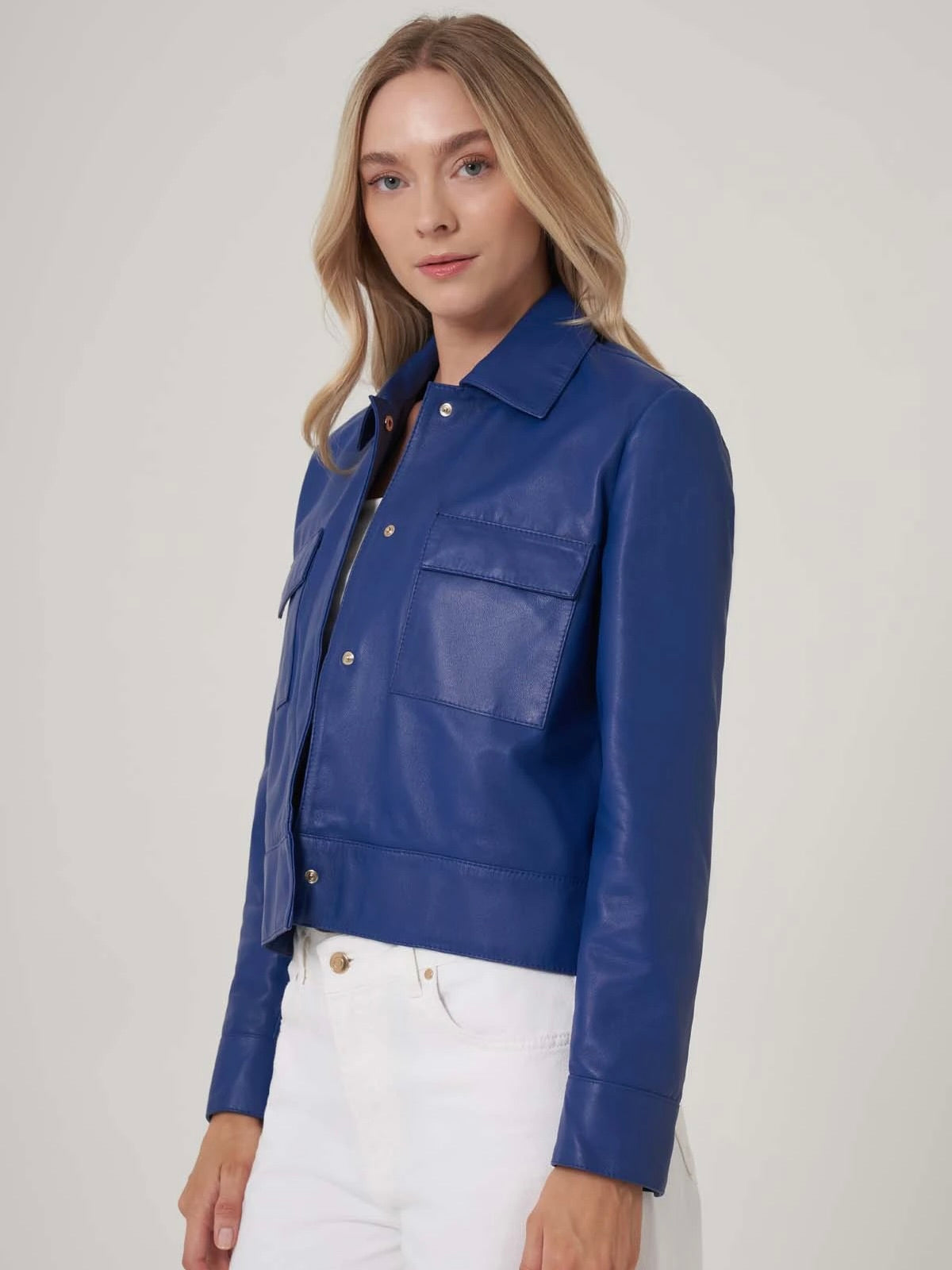 Güçlü ve modern bir siluet sunan bu kısa deri ceket, zamansız dokularla çağdaş bir tavır yaratıyor. Gömlek yaka kesimi ve metal çıtçıtlı kapanışıyla sade ama dikkat çekici bir görünüm sunarken, iki ön cep detayı cekete işlevsel bir dinamizm kazandırıyor.