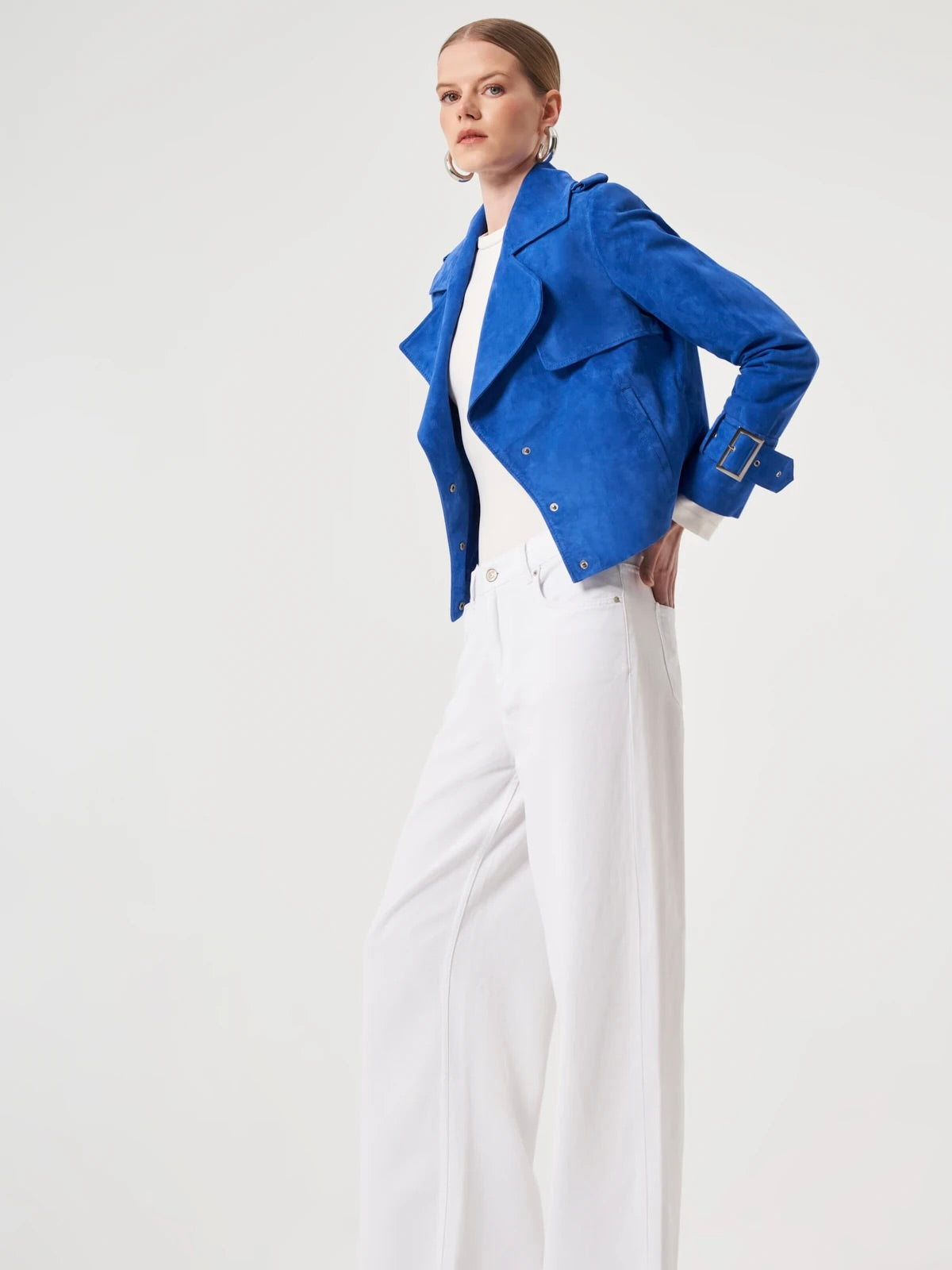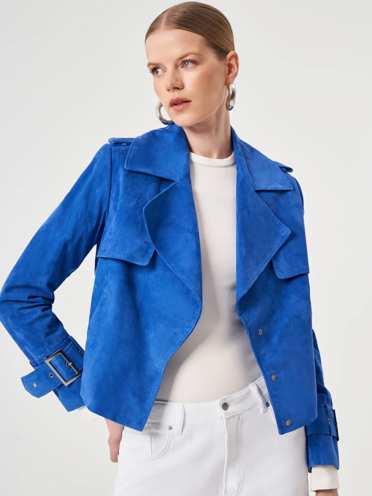 Utopian – Kobalt Mavisi Süet Deri Ceket