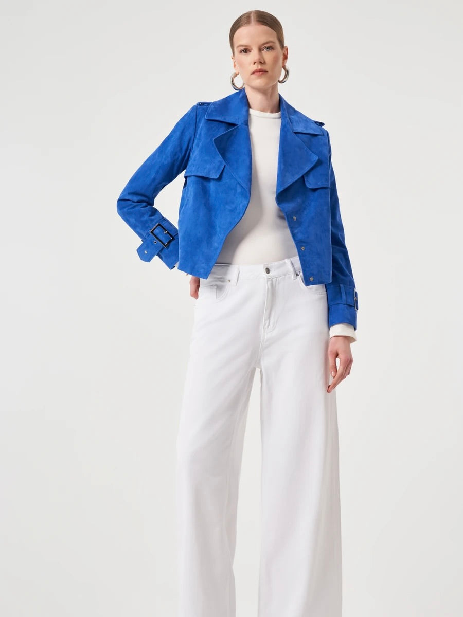 Utopian Kobalt Mavisi Süet Deri Ceket