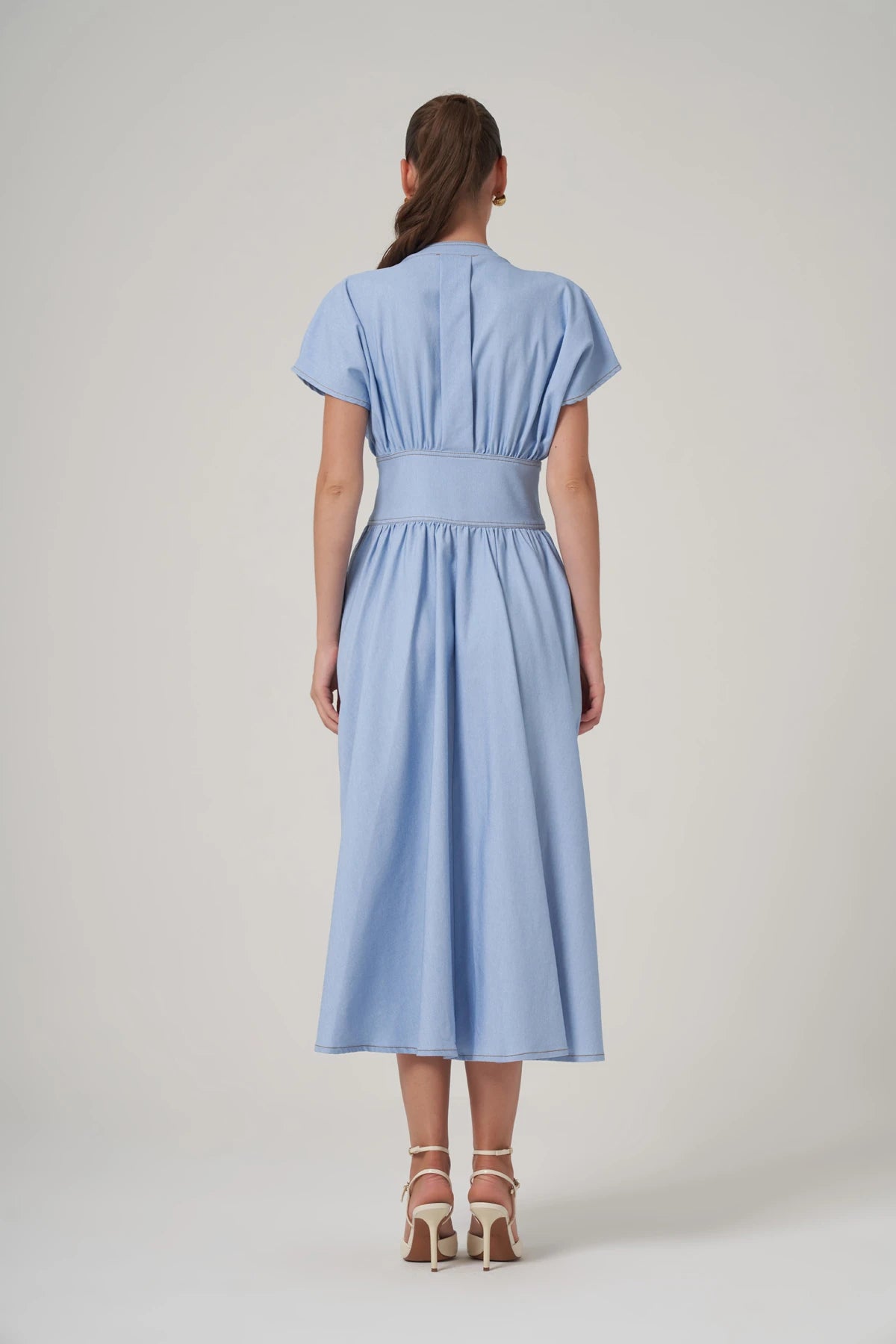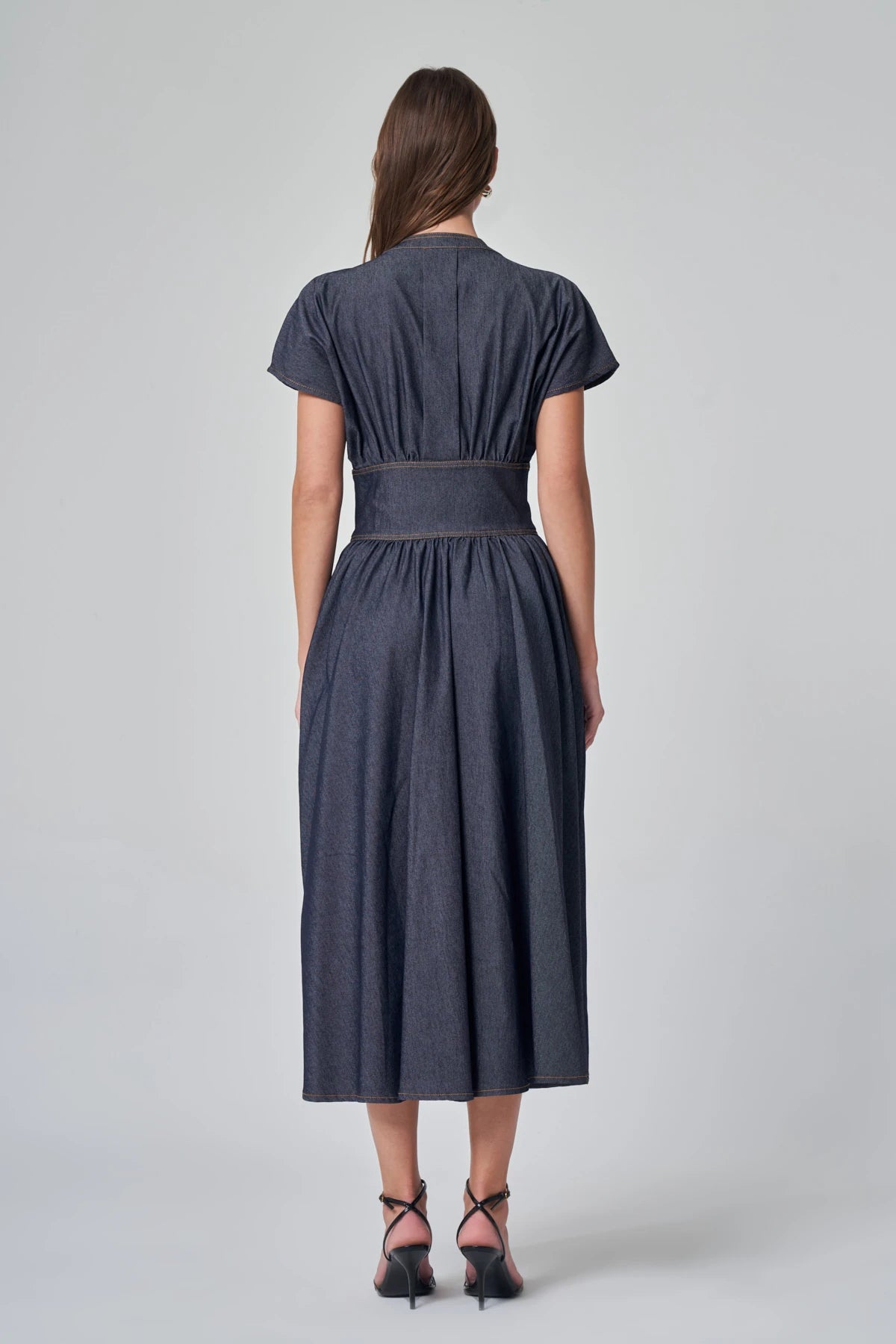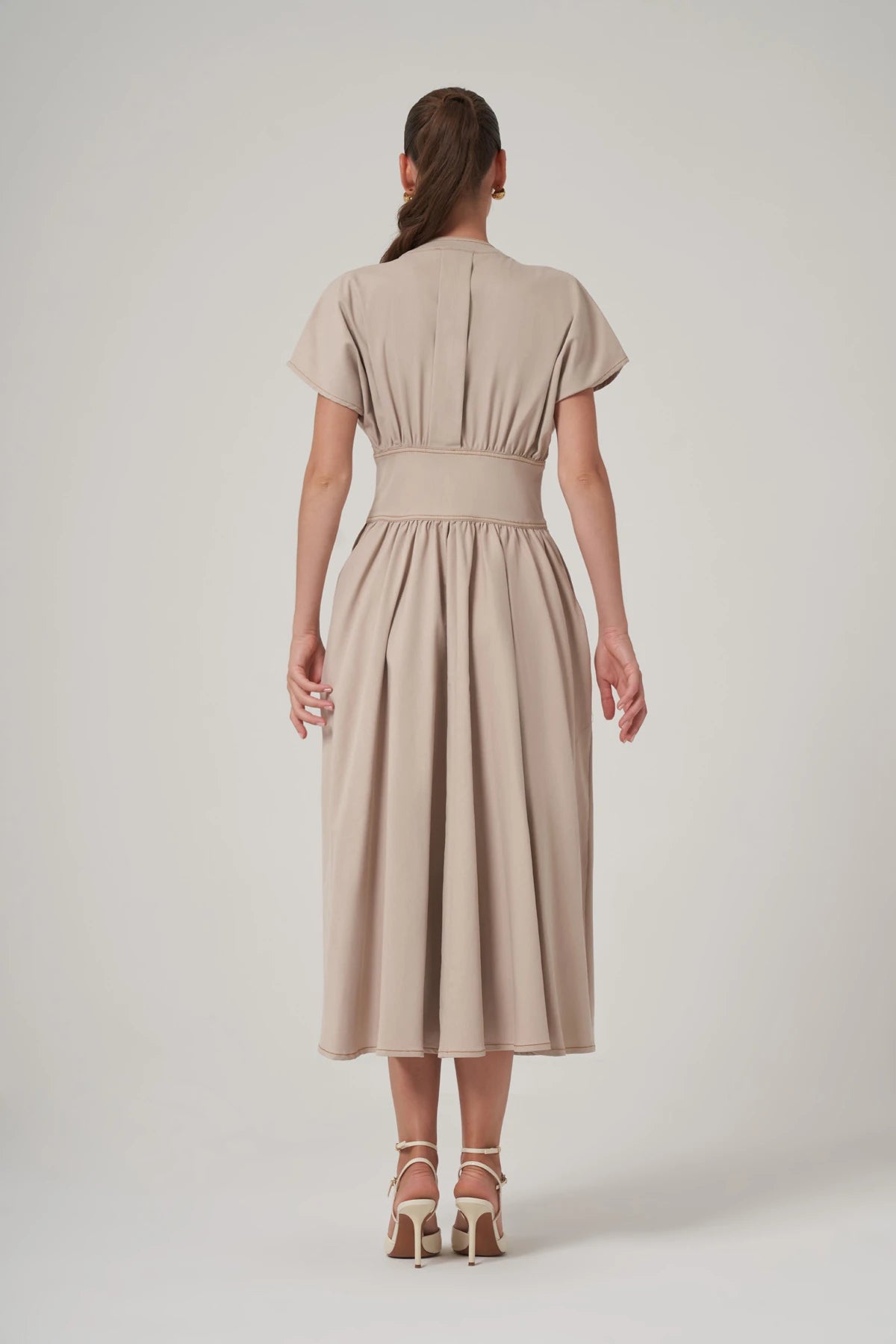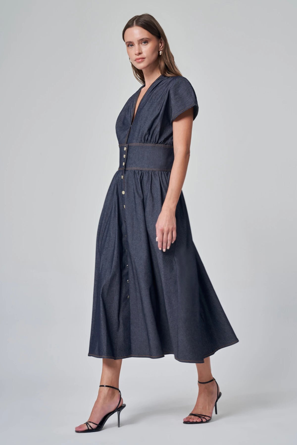 Utopian Kolsuz V Yaka Düğmeli Midi Elbise