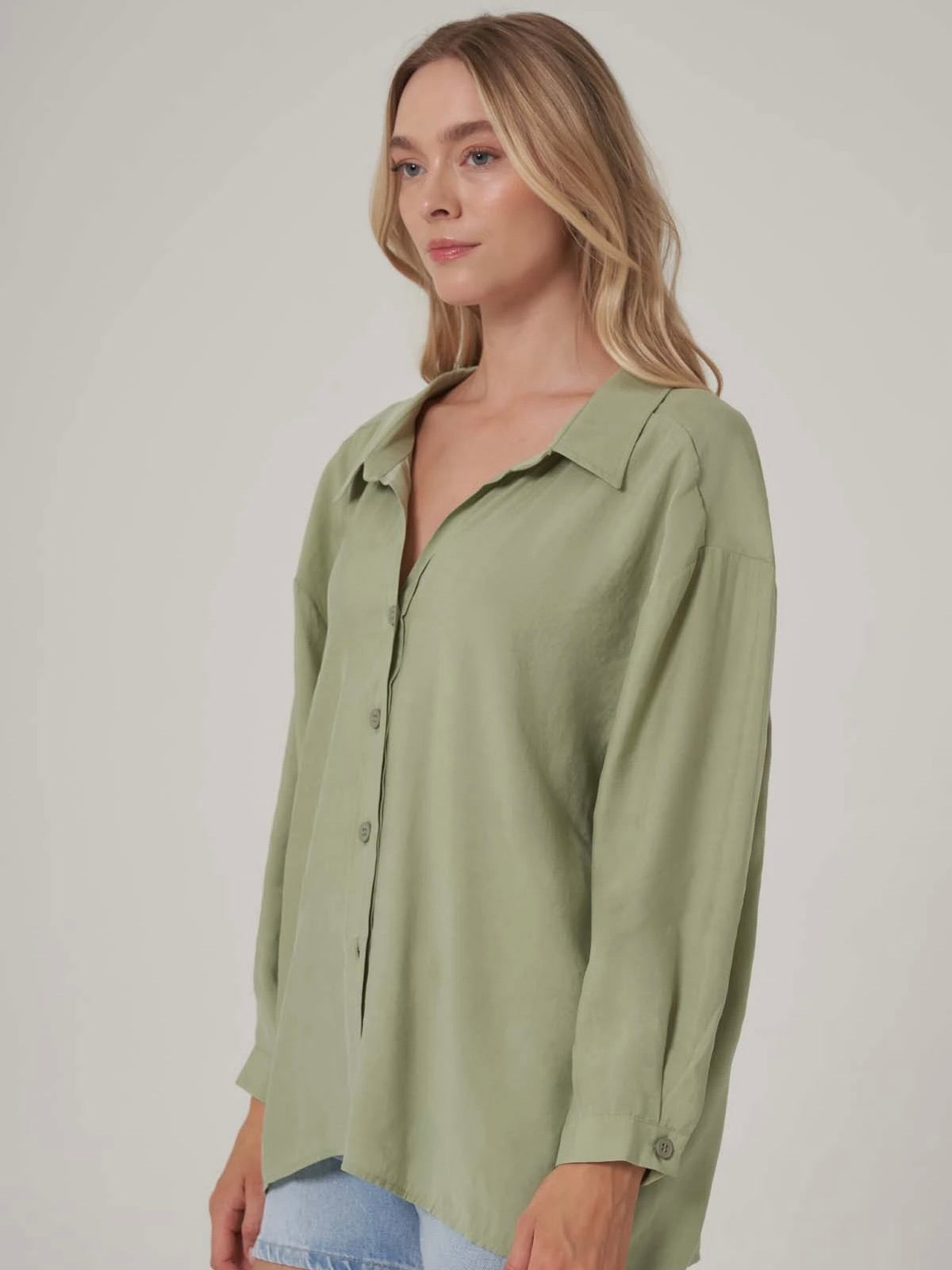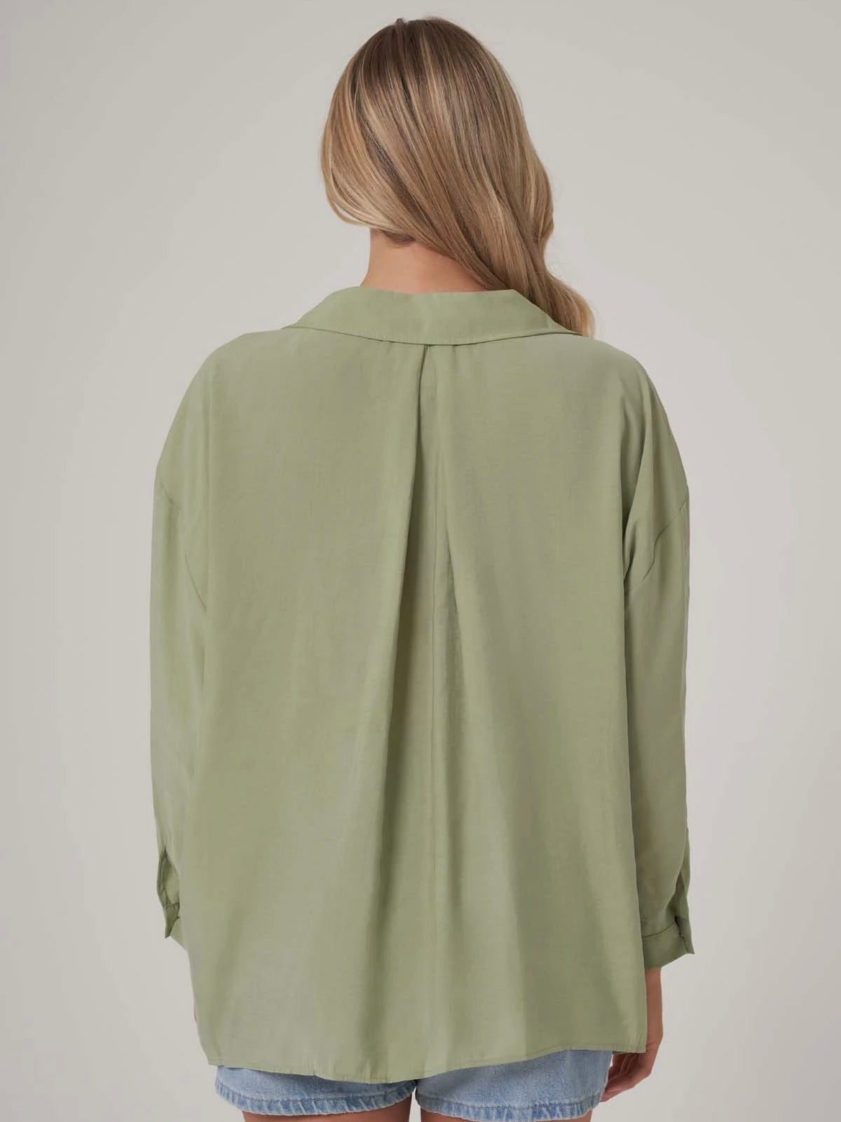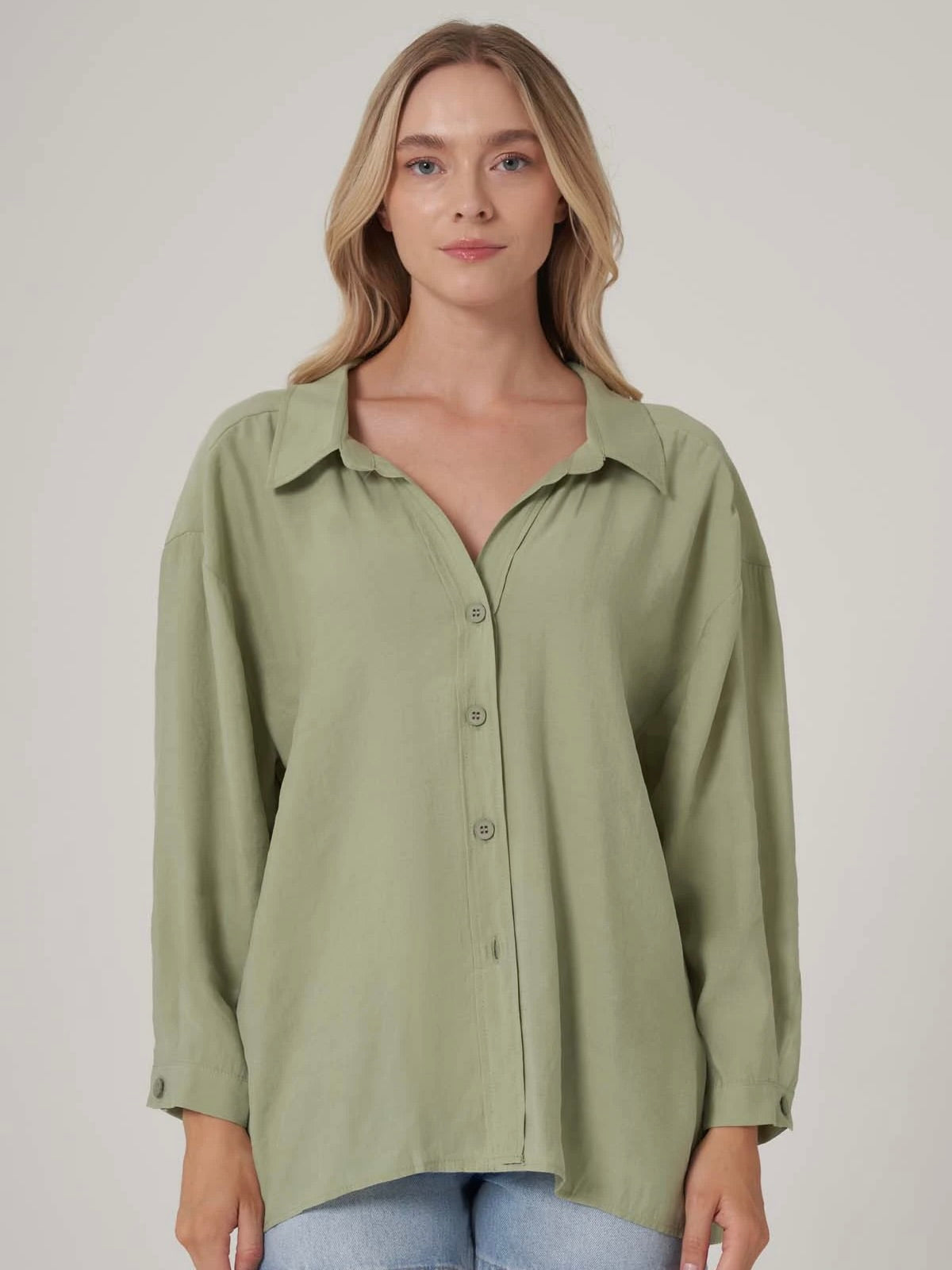 Utopian Oversize V Yaka Düğmeli Gömlek - Yeşil