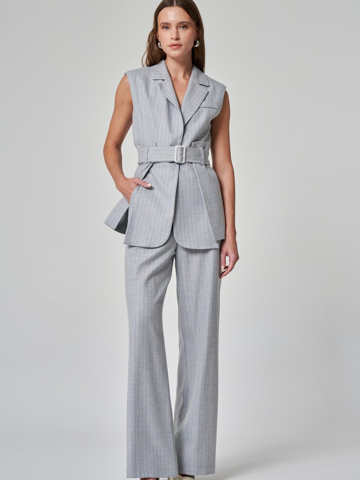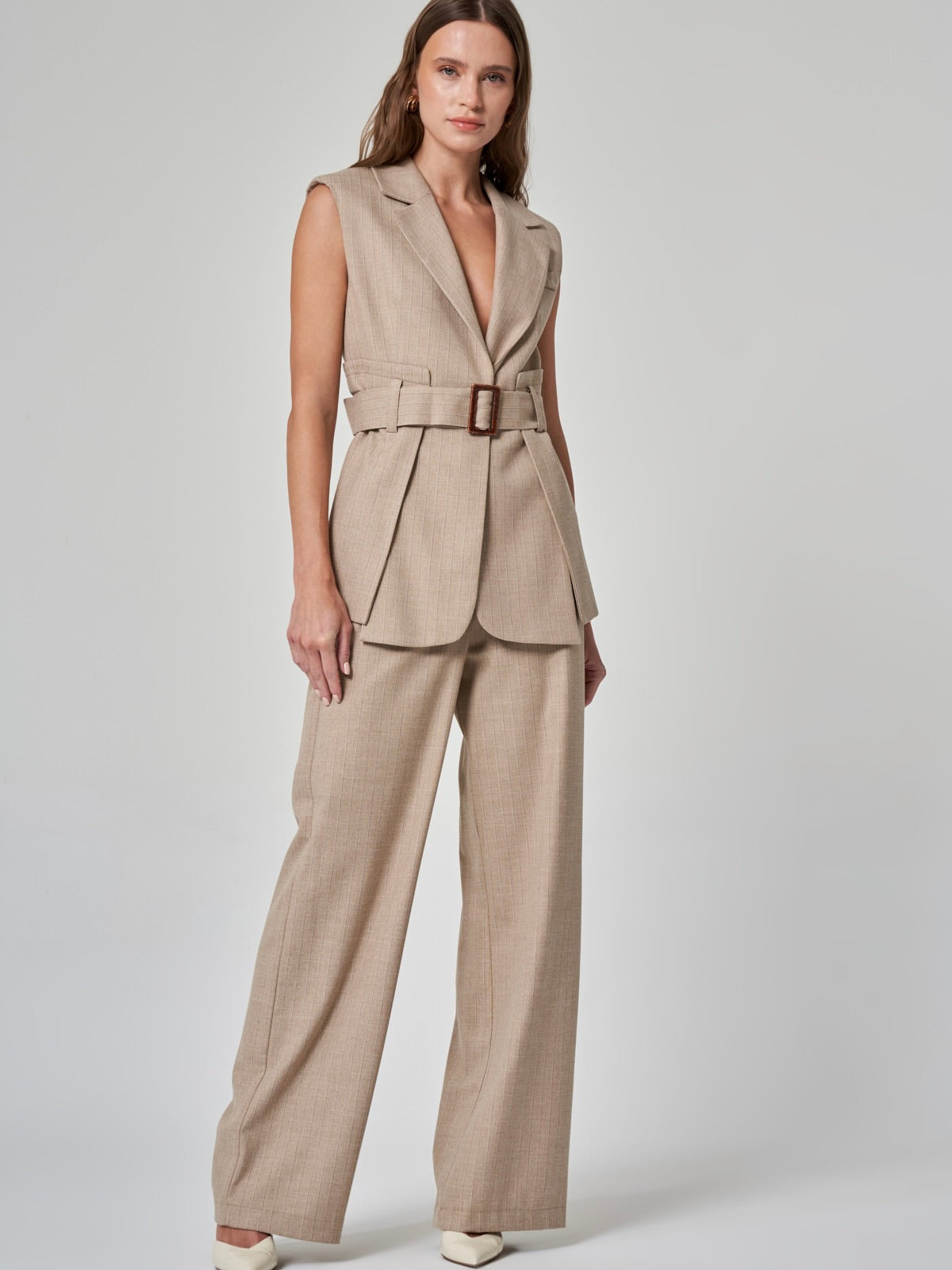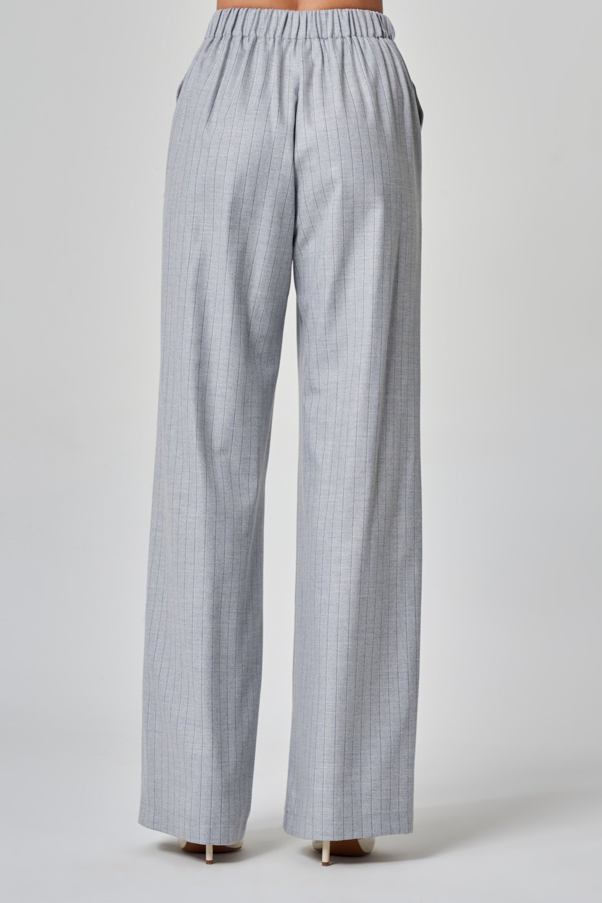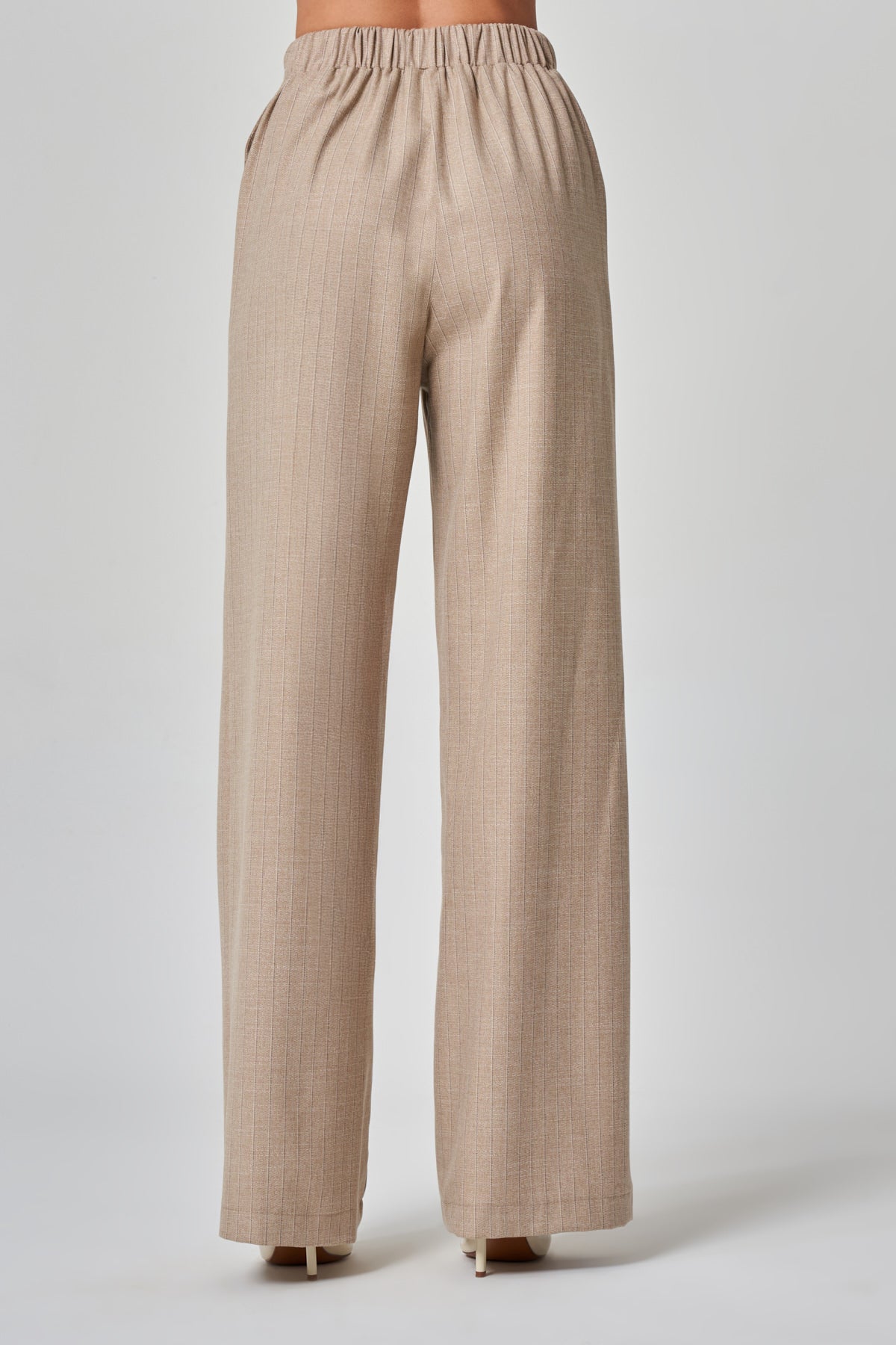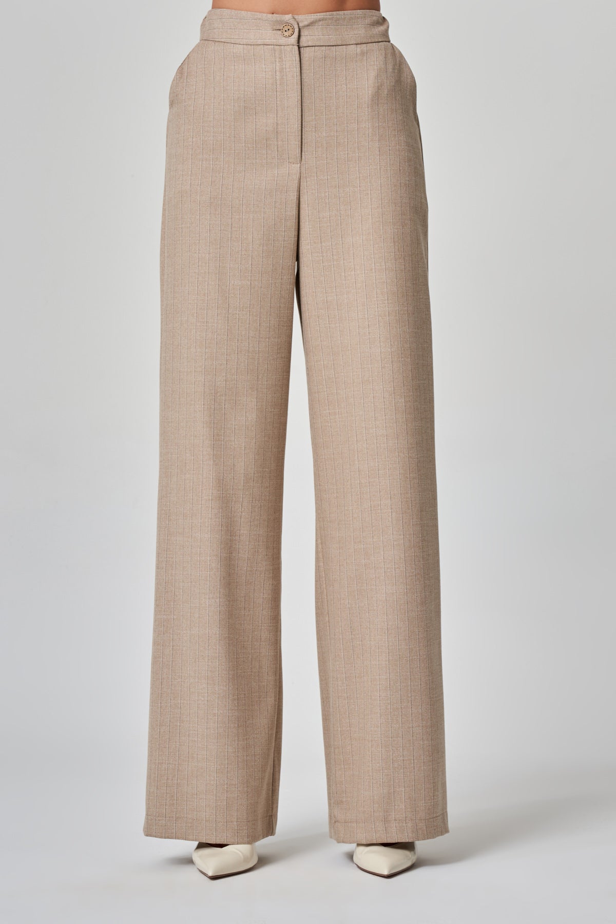 Hareket özgürlüğü sunan modern ve şık bir tasarım! %53 polyester, %20 pamuk, %18 viskon ve %9 lycra karışımıyla hafif ve esnek bir yapıya sahip olan bu parça, gün boyu konfor sunar. Yüksek belli ve beli lastikli tasarımıyla vücudu kusursuz şekilde sararken, cepli detaylarıyla fonksiyonelliği ön plana çıkarır. Çizgili deseniyle zamansız bir şıklık sunan geniş paça kesimi, hem klasik hem de modern kombinlere mükemmel uyum sağlar.