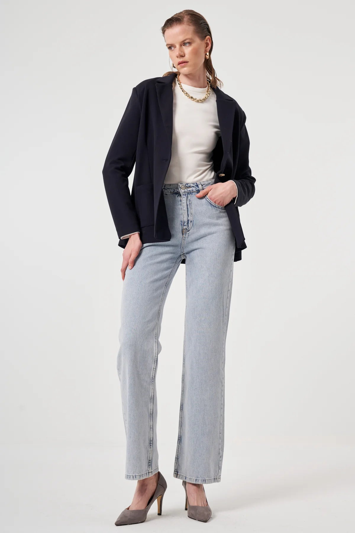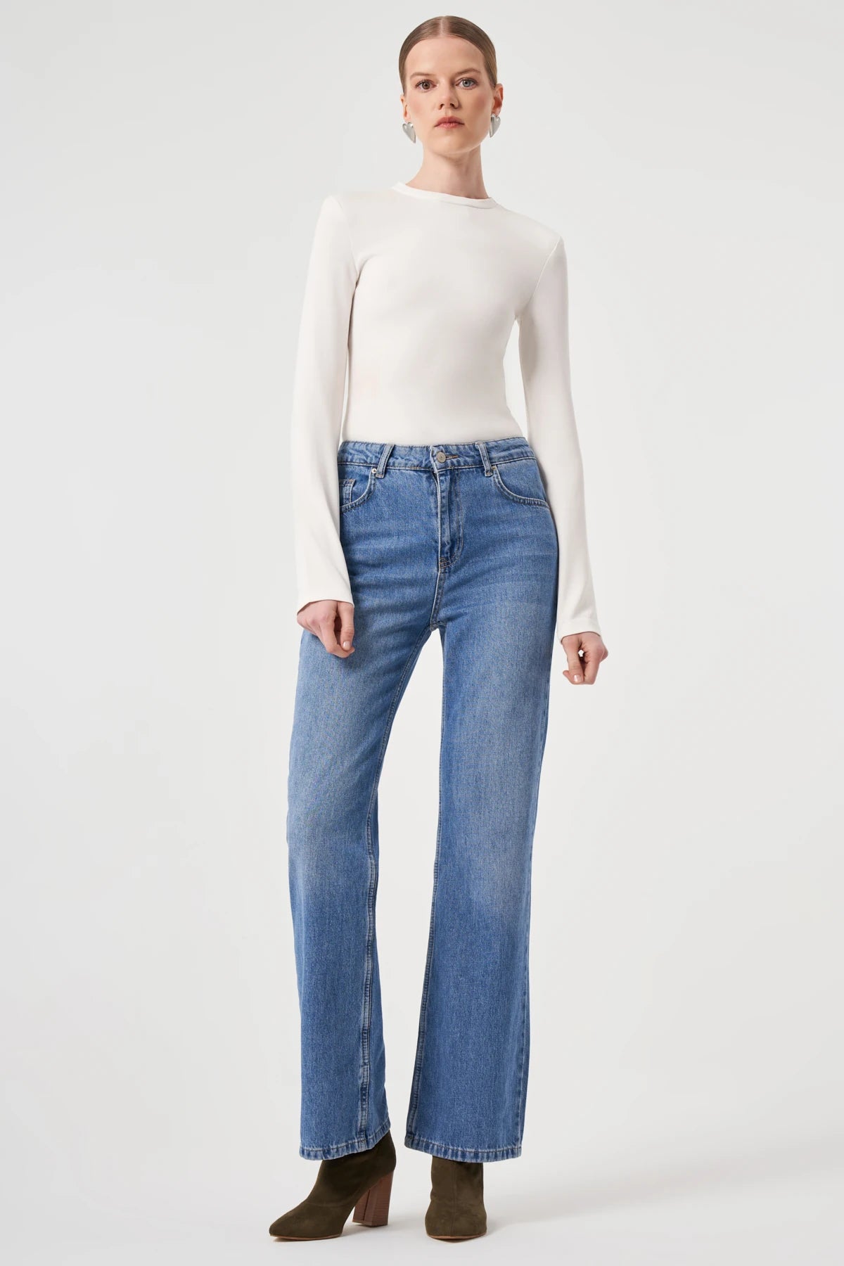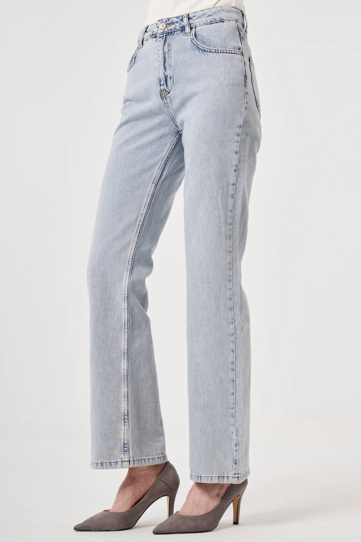 Modern şehir ruhunu klasik bir formda yakalayın. Utopian’ın yüksek bel kesimiyle öne çıkan bu jean, vücuda oturan kalıbı ve düz paça yapısıyla hem konforlu hem şık bir görünüm sunar. Doğal pamuk dokusu sayesinde nefes alan bir yapıya sahiptir; gündelik kombinlerden ofis şıklığına kadar geniş bir kullanım alanı sunar.